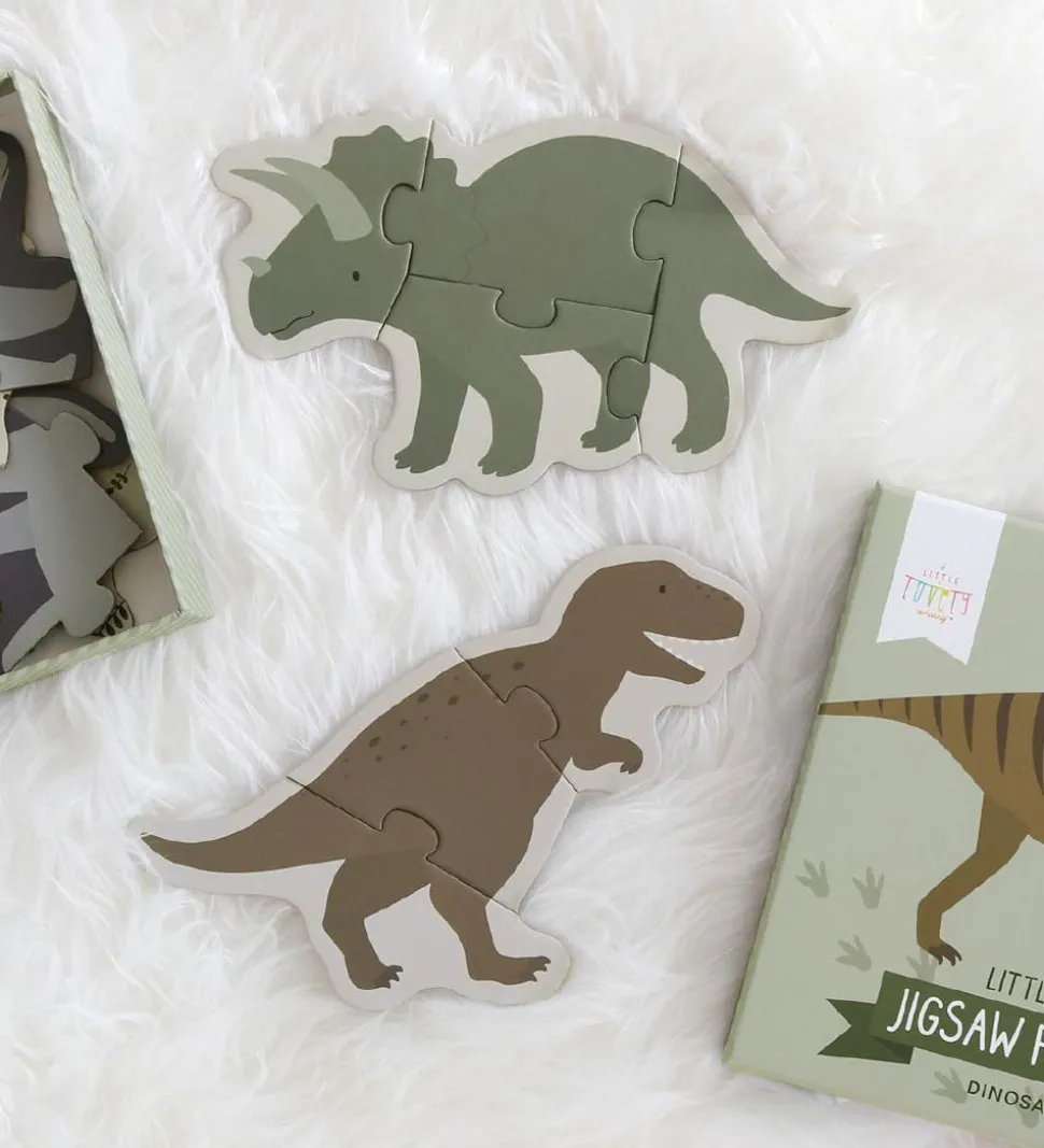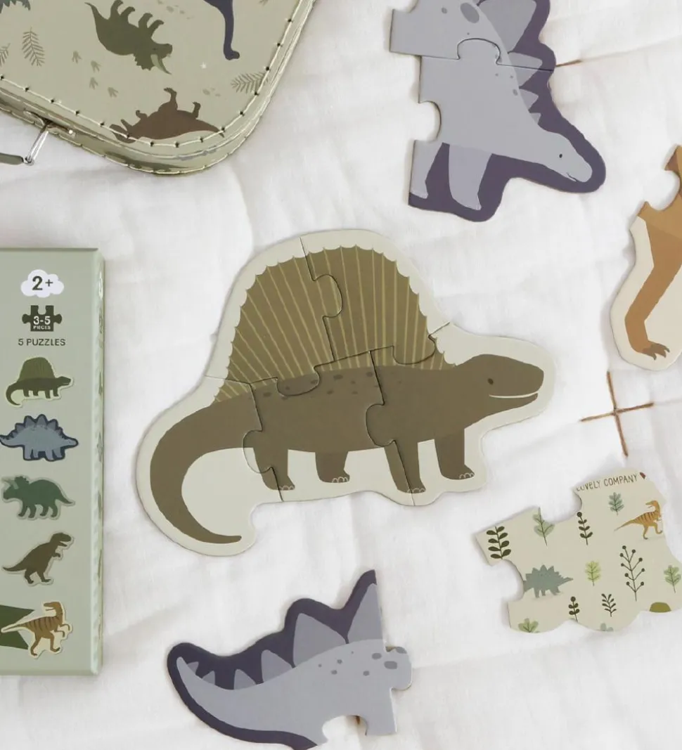Sjovt A Little Lovely Company puslespil bestående af 5 små puslespil, med motiver af dinosaurer.