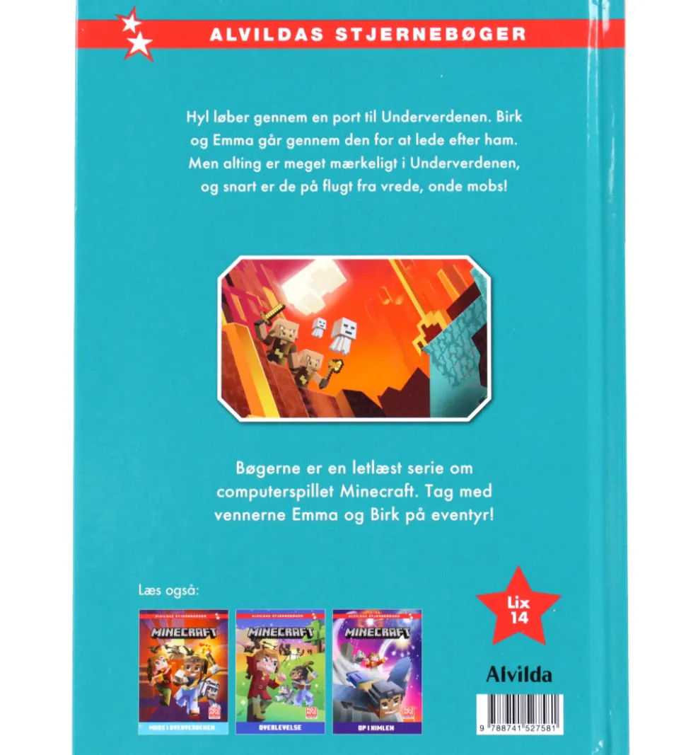 Fin Alvilda bog med titlen “Minecraft – Flugten fra underverdenen”.