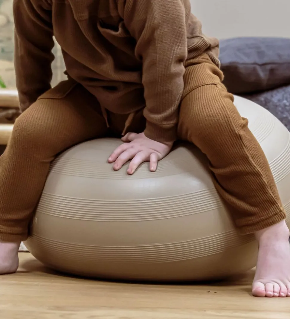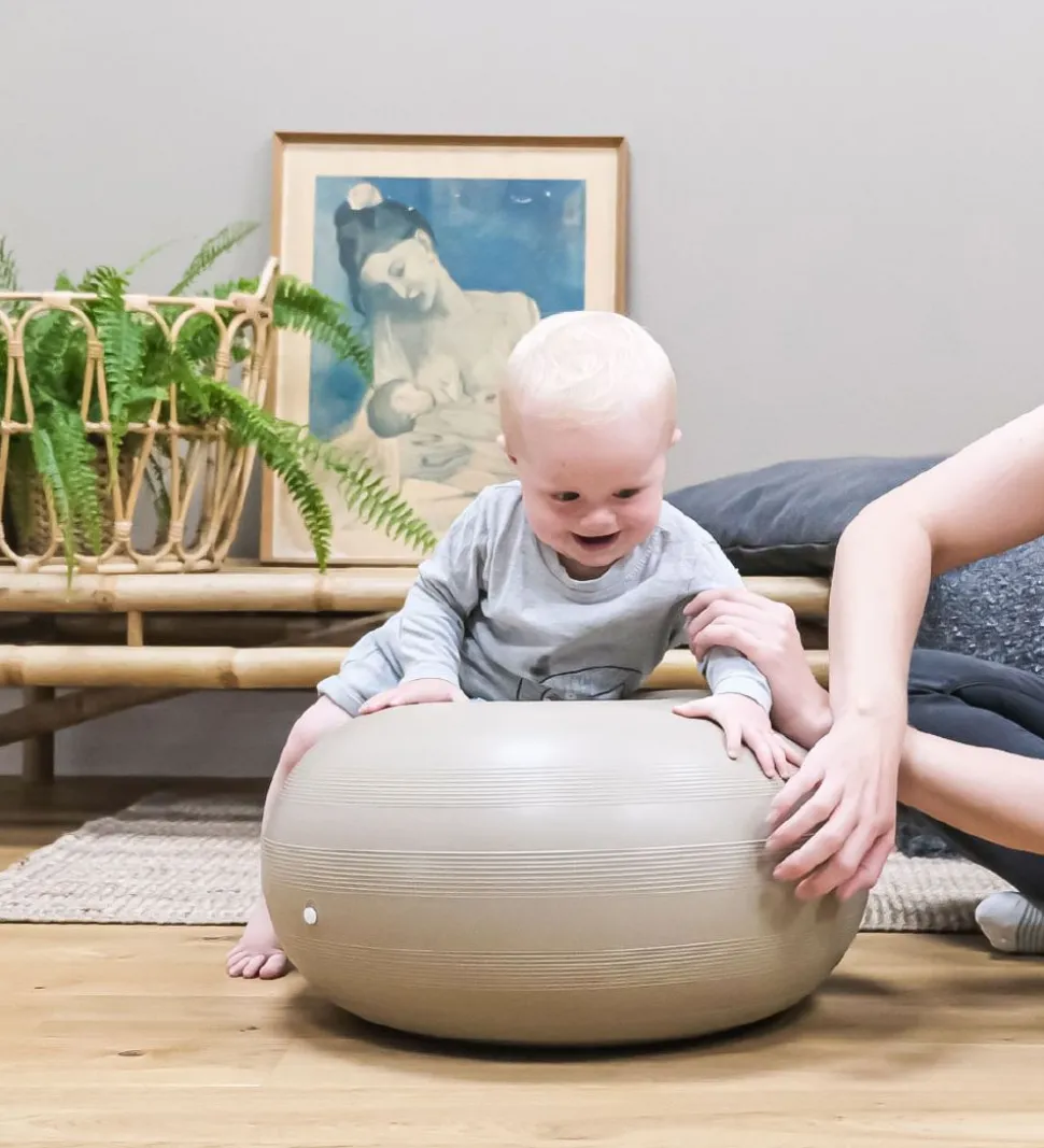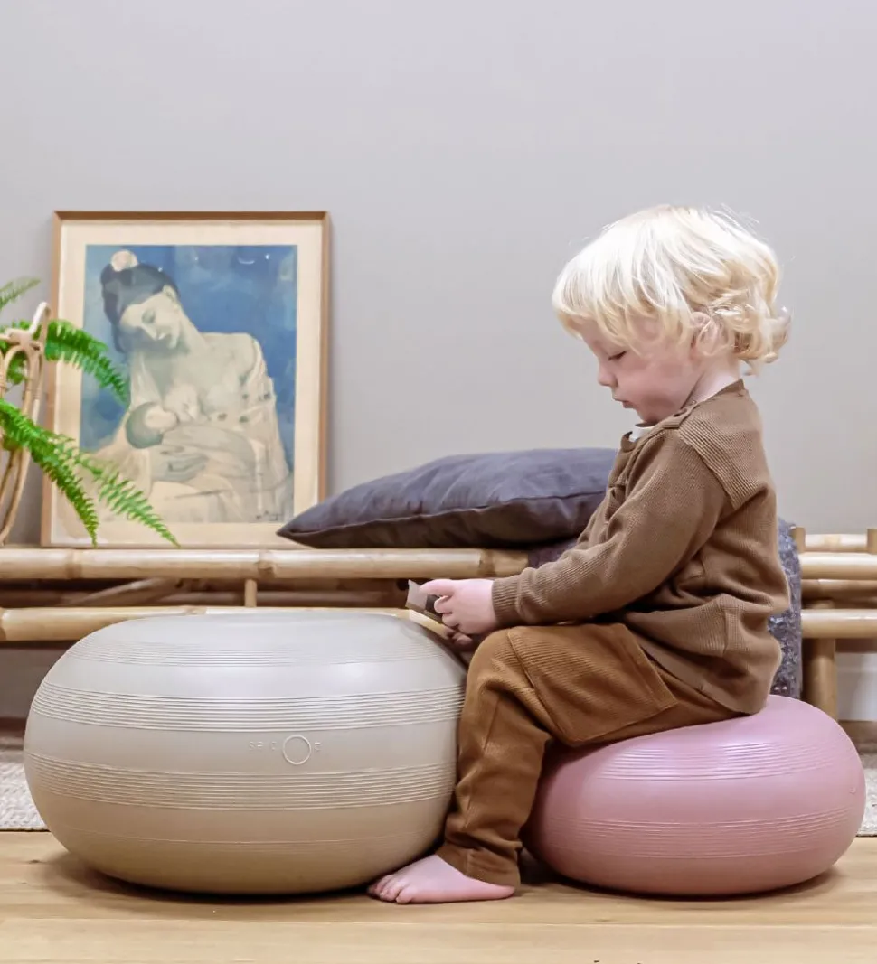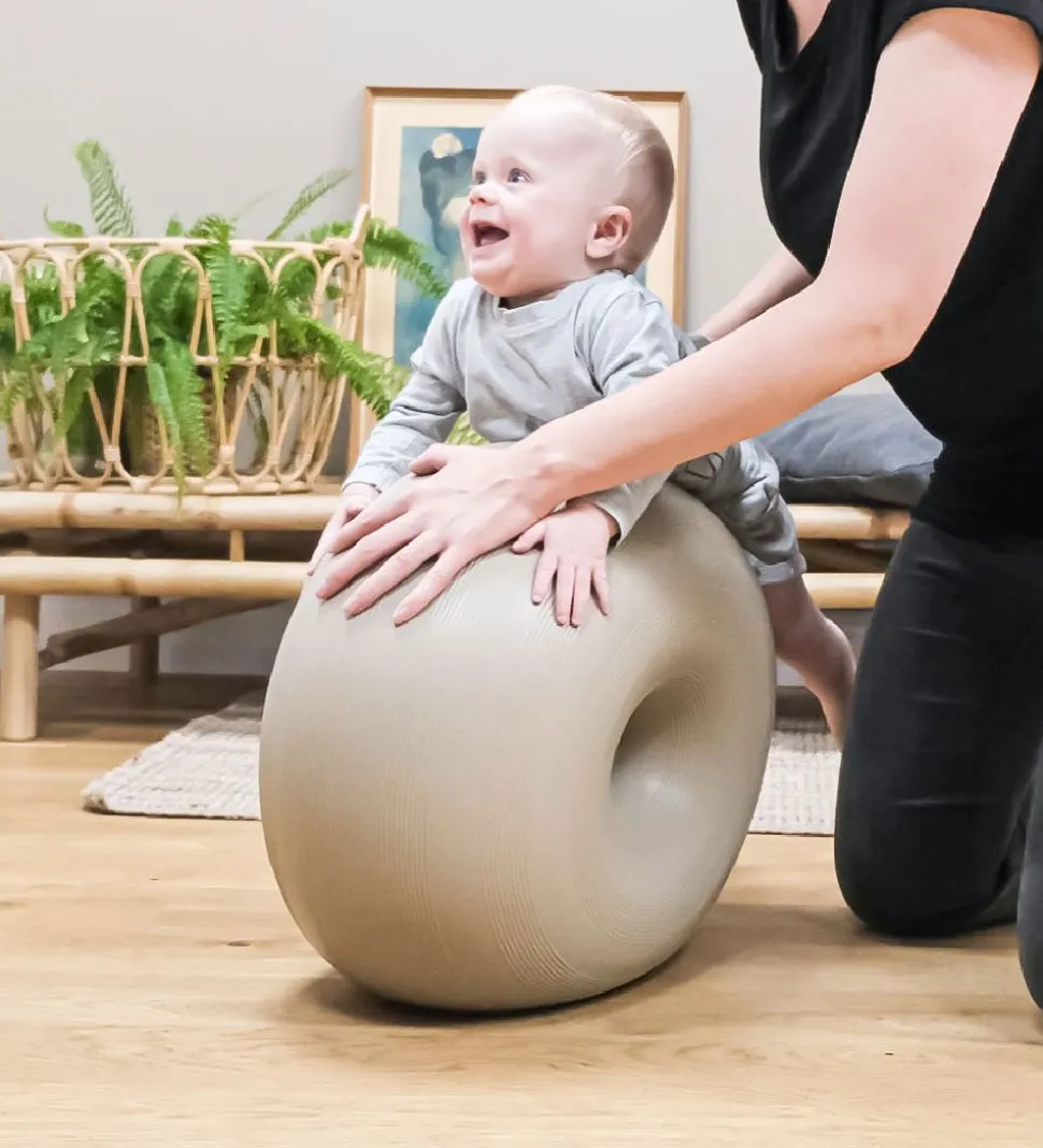 Hvis man trykker donutten ned mod gulvet, opstår der et vacuum, så den sætter sig fast. Så har man en sjov og stabil pude, der fungerer som afsæt til masser af tumleleg. Det er kun fantasien, der sætter grænser.