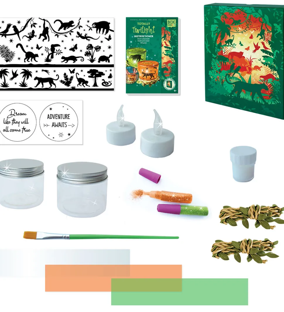 Spændende BOX CANDIY kreasæt i form af dette natlampe glassæt med temaet “Totally Twilight Rainforest”.