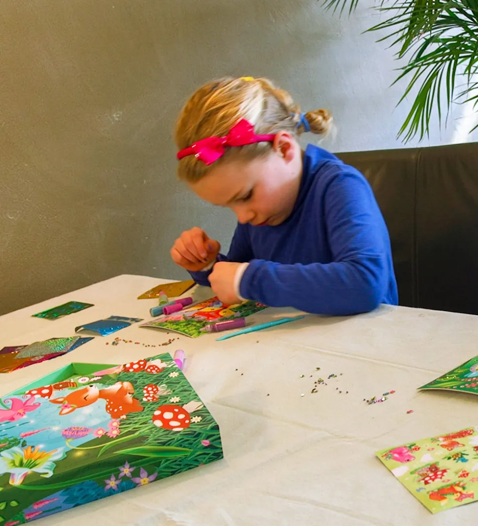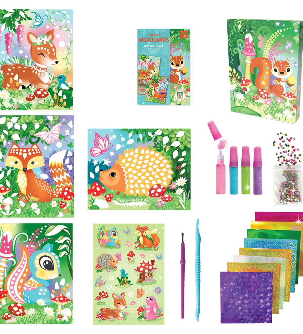 Spændende BOX CANDIY kreasæt i form af dette sand- og foilekunstsæt med temaet “Totally Woodlands”.