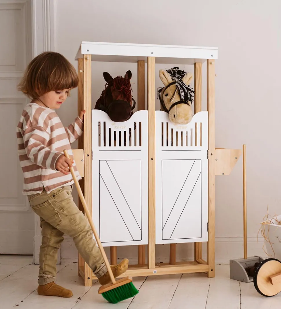 by ASTRUP kæphesten har et godt, solidt rideskaft i træ, som er kort, hvilket gør kæphesten velegnet til at springe over forhindringer med. Kæphesten er perfekt til at lege rideskole, ridder, ridekonkurrence og meget andet. Kæphestens hovedtøj kan tages af, og kæphesten kan nusses, børstes og strigles.