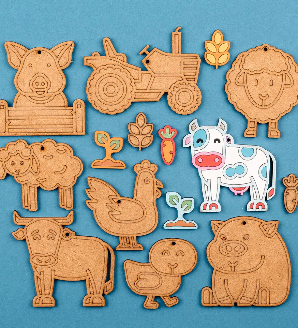 Hyggeligt Crateit kreatsæt i form af fine figurer af HDF-træplader i et dyrevenner-tema.