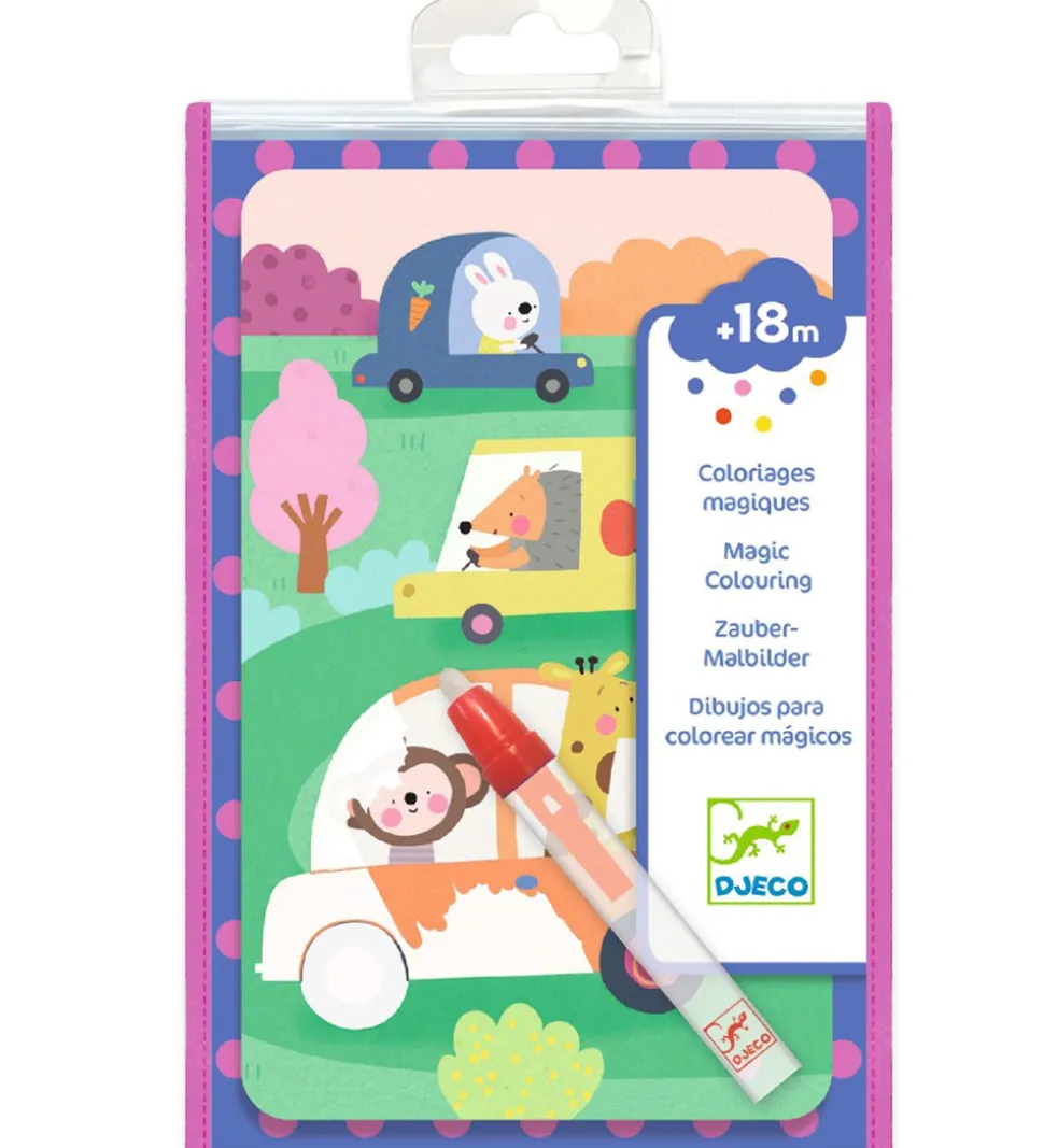 Djeco malebogen er perfekt til de små, da man blot skal fylde den magiske tusch med vand, for at få farverne frem på motiverne. Når motiverne tørrer, er de klar til at blive farvet igen. Med malebogen kan forældrene også have ro til at vide, at der ikke bliver tegnet på borde og andre ting, da den magiske tusch blot er fyldt med vand.