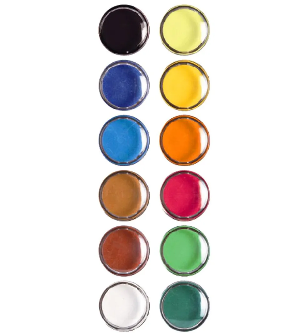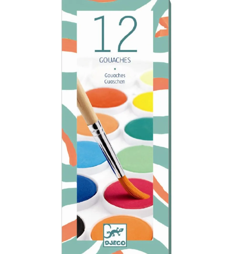 Flotte Djeco vandfarver med 12 forskellige farver.
