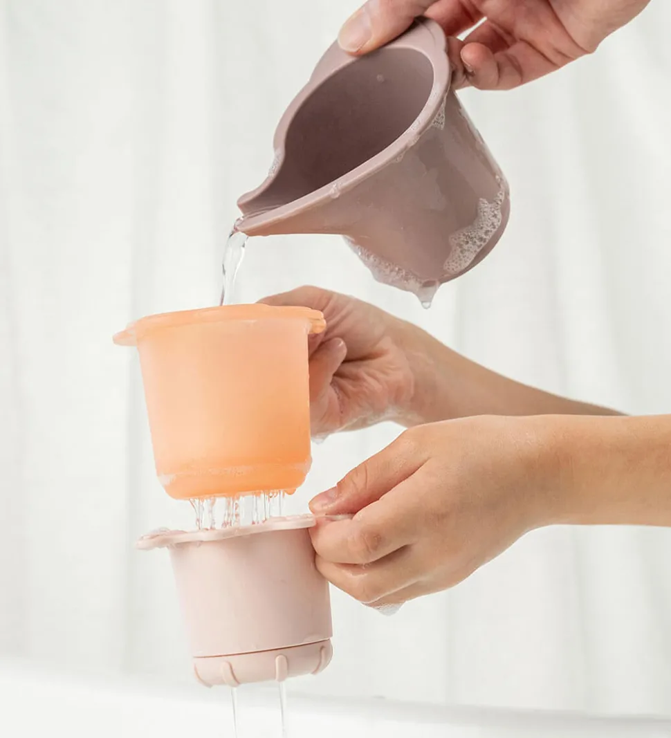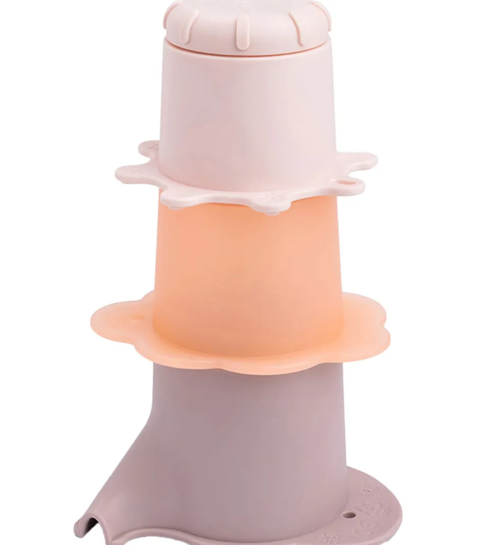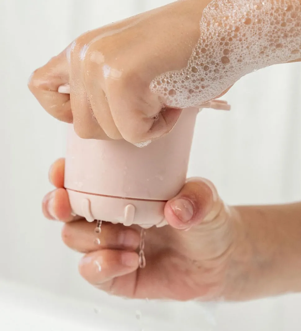 - 1 skål formet som en sol i lyserød med åbne/lukke-funktion og små huller i bunden