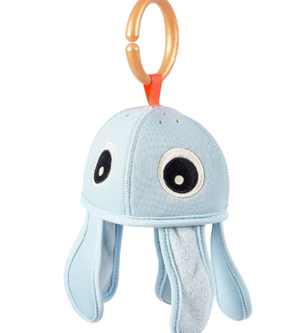 Sød Done By Deer badelegetøj, der forestiller en lyseblå blæksprutte med kæmpe store øjne.
