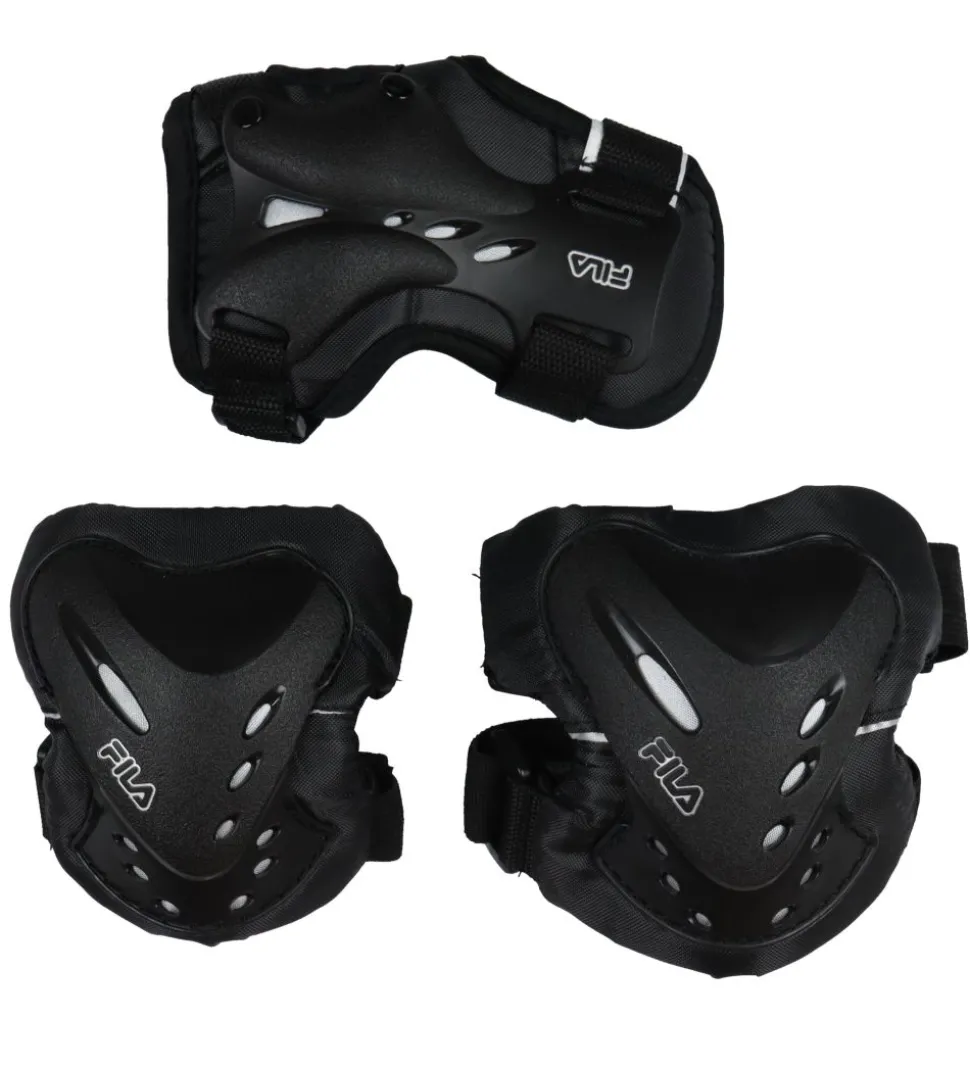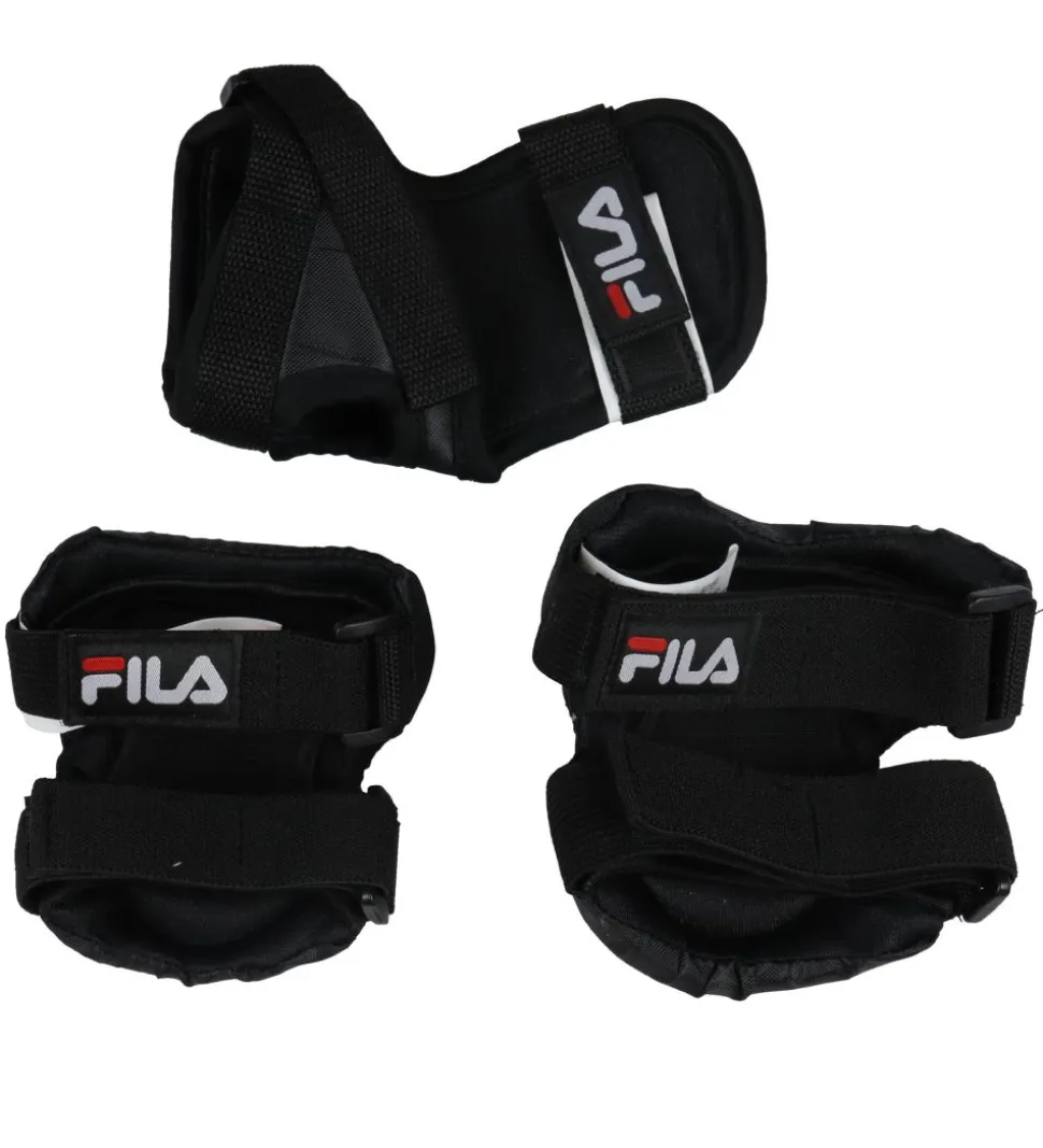 Fila beskyttelsessættet beskytter de udsatte områder på barnet, når det er ude at stå på rulleskøjter, løbehjul, skateboard eller køre på løbecykel. Beskyttelsessættet spændes fast med gode velcrostropper, så de bliver siddende hvor de skal. Beskyttelsessættet forhindrer ikke nødvendigvis skader, men det afdæmper de slag, som barnets krop kan få, hvis det falder.