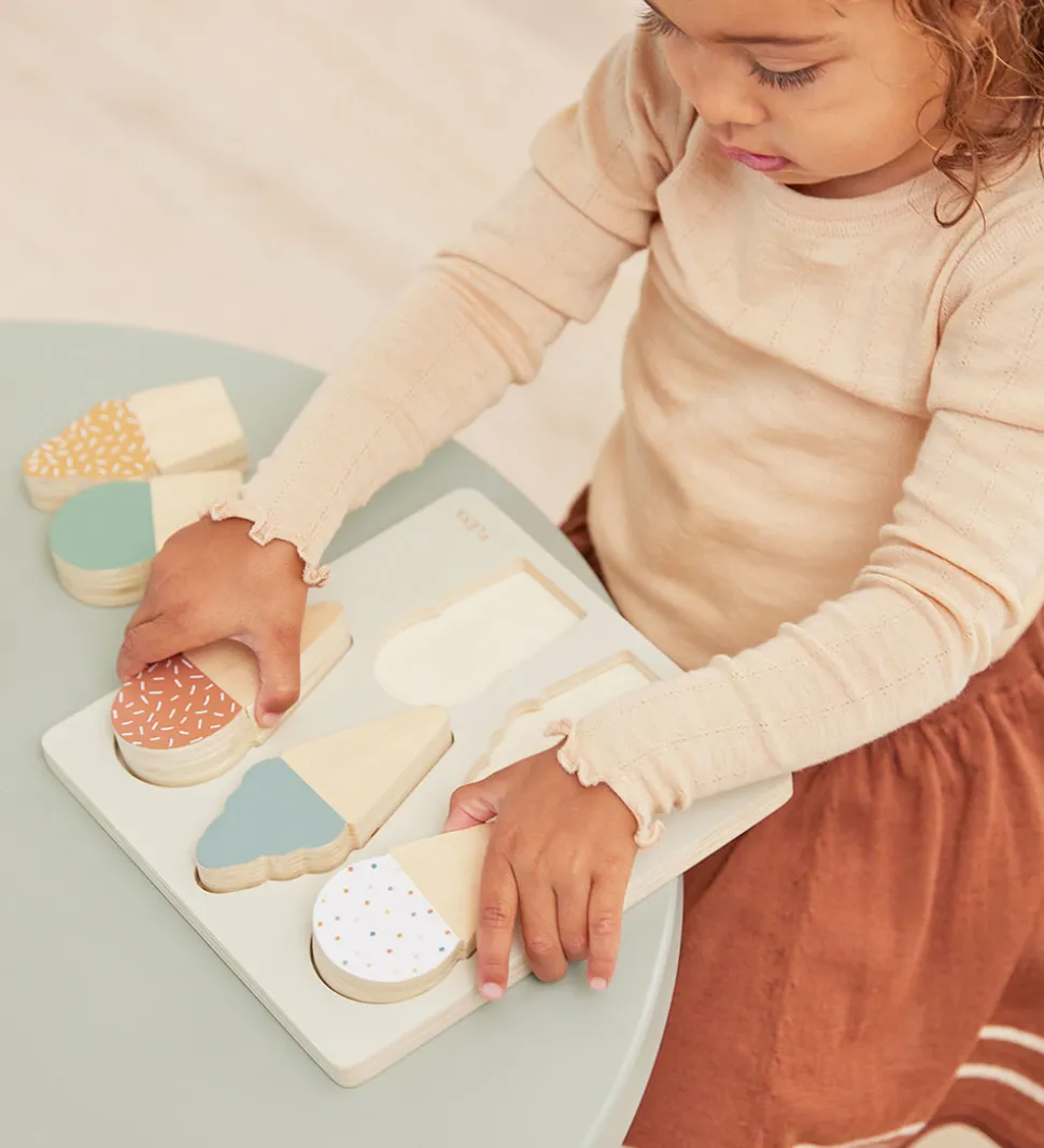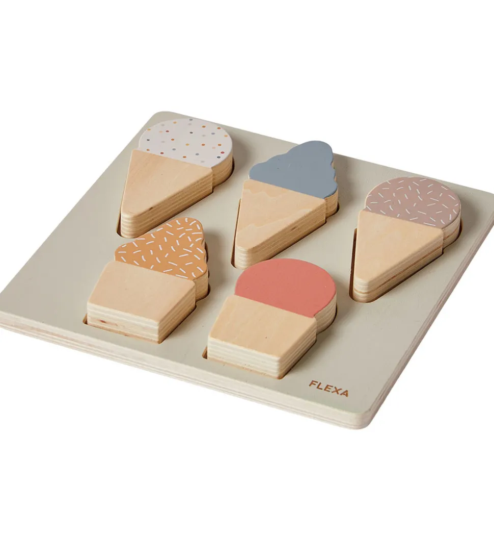 Flexa puslespillet indeholder isvafler med forskellige farver og møsntre, der stimulerer både fantasi og finmotorikken. Puslespillet er ideelt til leg og læring, og Flexa’s kvalitet sikrer, at det kan bruges mange gange, og de smukke brikker er nemme at håndtere for små hænder.