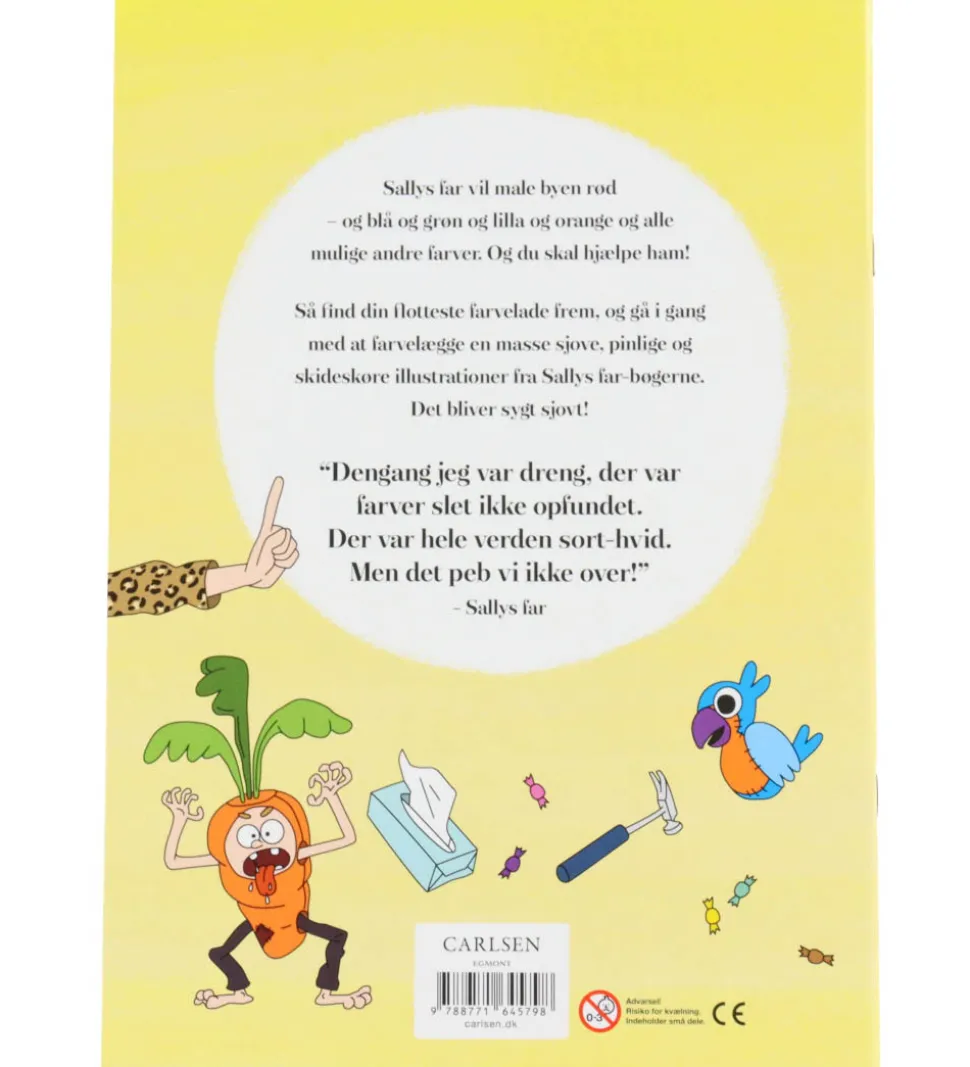 Malebogen indeholder fine illustrationer fra Sallys far-universet. Indeholder 24 sider, der opmuntrer til kreativitet og leg med farver. Forlaget Carlsen tilbyder sjove og inspirerende motiver.