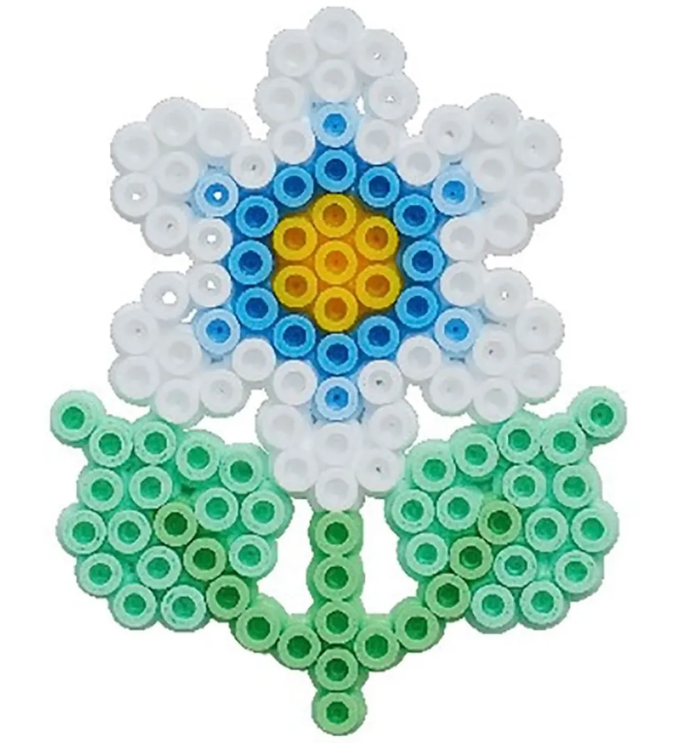 Sjovt Hama perlesæt med en perleplade med form som sommerfugl og en med form som en blomst.