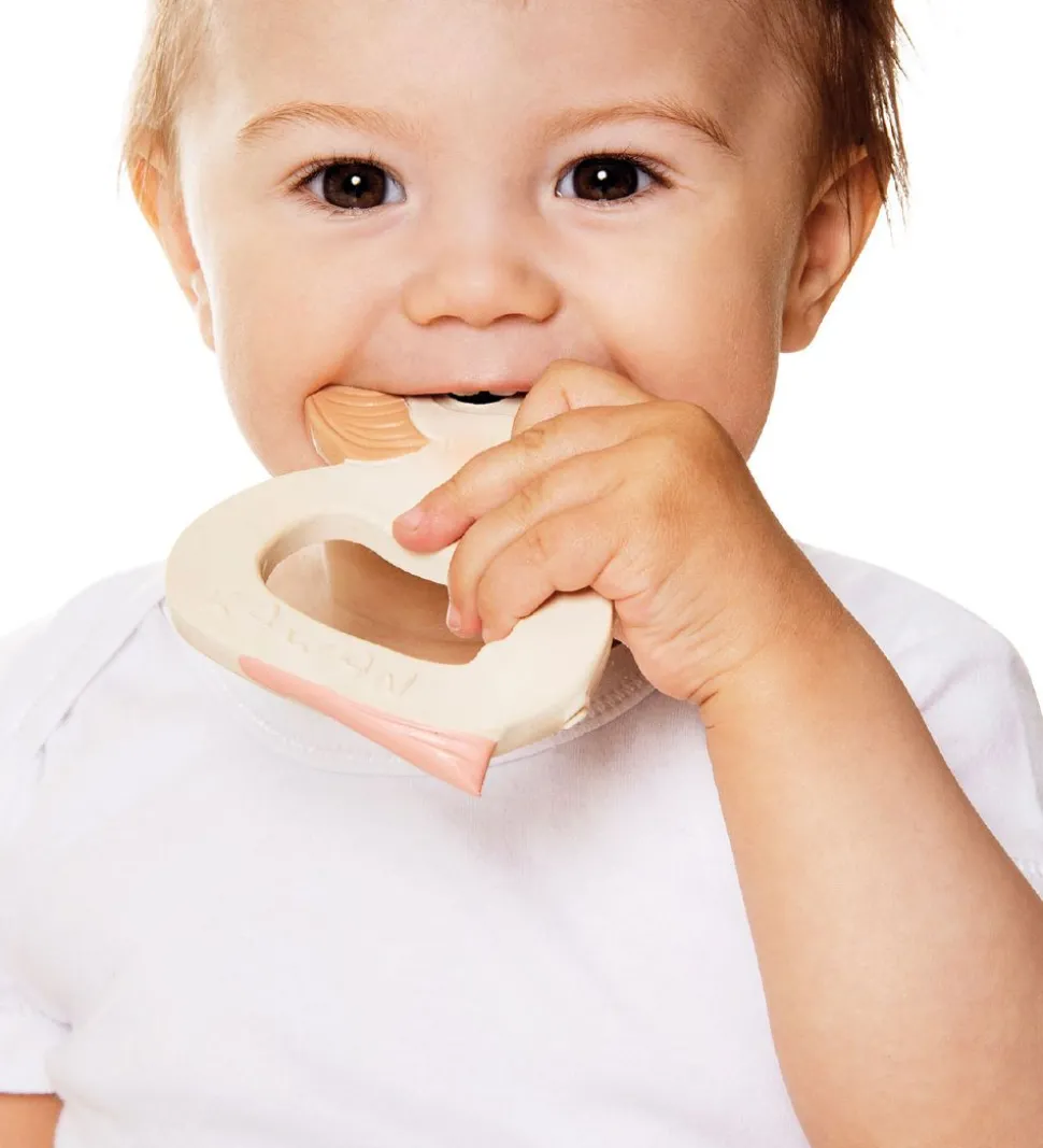 Naturgummiet er helt frit for farlige kemikalier som PVC, ftalater, silikone, BPA og EVAtan, og er derfor helt sikkert at tygge i for barnet.