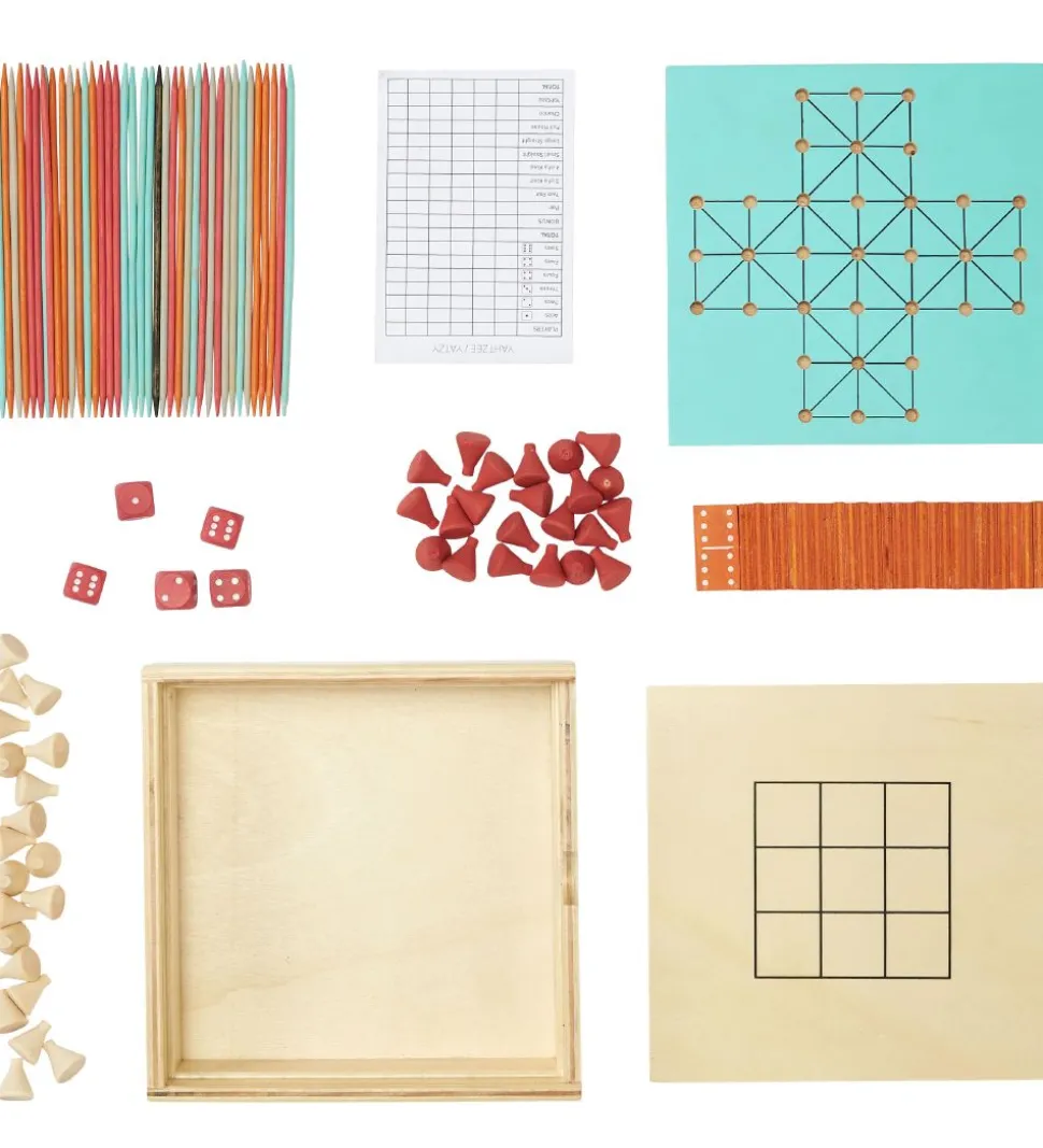 Fine Kids Concept spil i træ i en fin æske med 6 forskellige spil bestående af:
