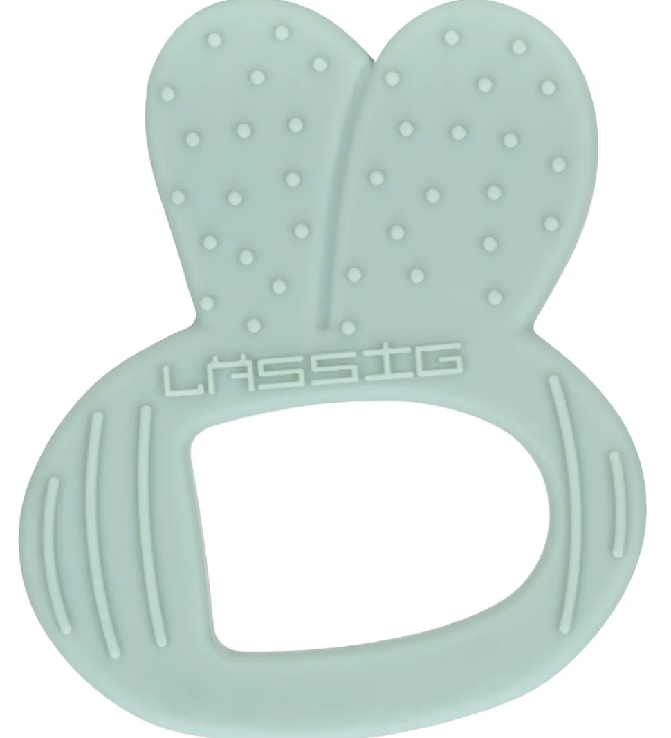 Lässig bideringen er lavet af blødt silikone med mønstrede strukturer, som er gode for gummer og tænder, samtidig med at den er sjov at lege med. Bideringen rengøres med kogende vand eller i opvaskemaskinen.