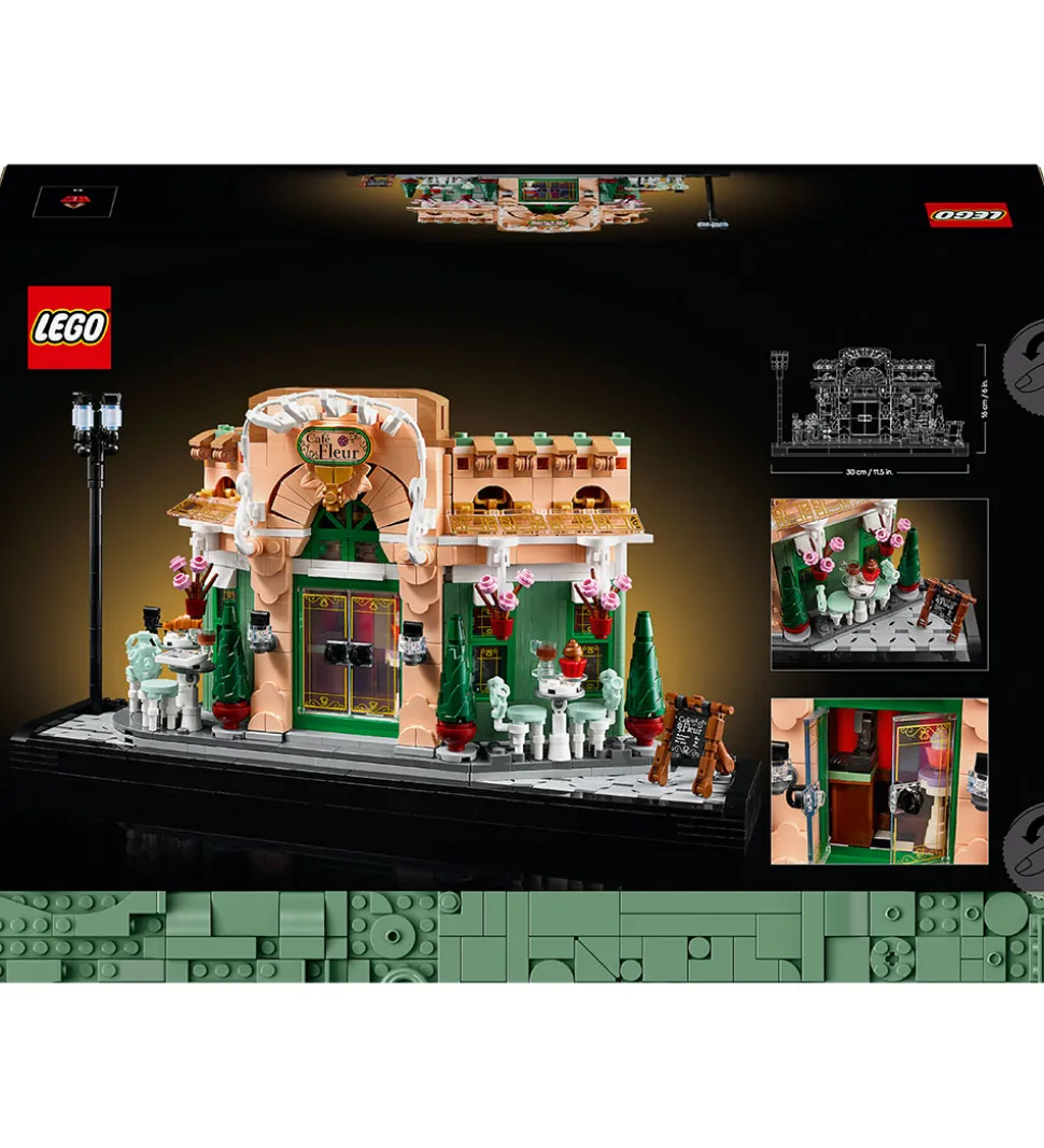 LEGO® Icons sættet gengiver en autentisk café med klassiske arkitektoniske detaljer, udendørs siddepladser og en hyggelig atmosfære. Modellen indeholder en række dekorative elementer, der bringer caféens charme til live.