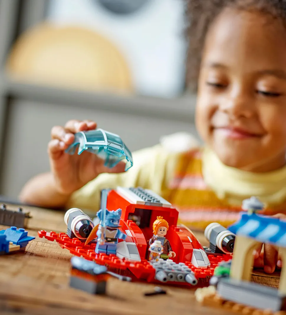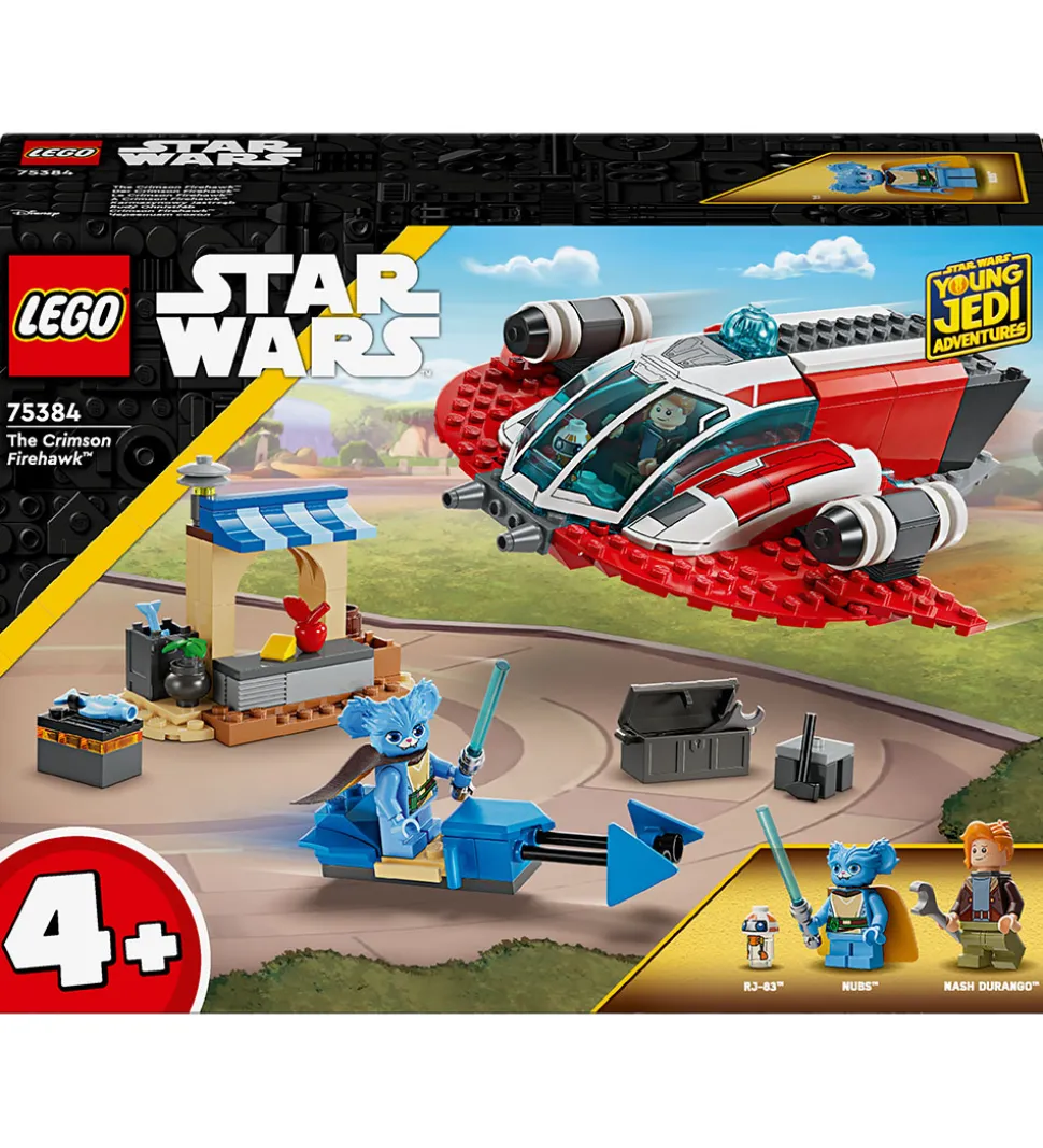 LEGO® Star Wars sættet er perfekt til det kreative barn, der vil bygge og lege indholdet, som omfatter rumskibet Crimson Firehawk og en speedercykel, en lille model af en markedsplads samt minifigurer af Nash Durango med et skruenøgleelement, Nubs med et lyssværd og en droidefigur af RJ-83, der kan sættes på Nashs ryg.