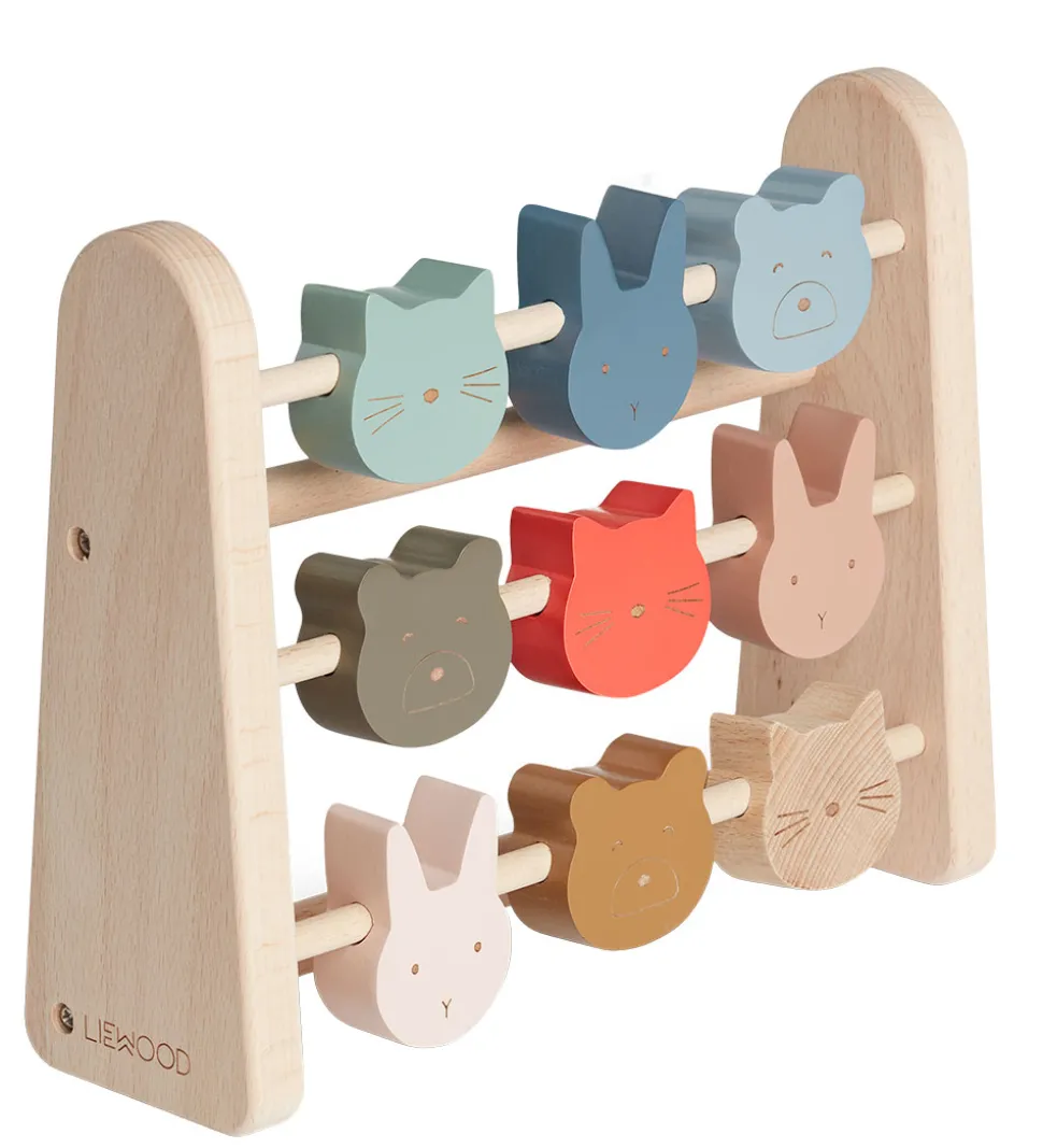 Liewood kuglerammen består af 3 pinde med 3 motiver på hver. Kuglerammen er sjov og lærerig for de små, da den er med til at forbedre finmotorikken og lære at tælle. Kuglerammen er dekorativ at have stående fremme og er i en holdbar kvalitet.