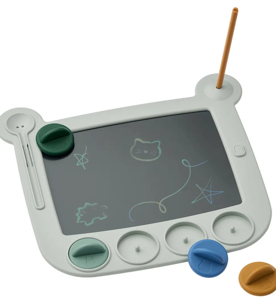 Liewood tegnetavlen har en smart LCD-skærm, som der kan tegnes på med den medfølgende pen. Den er let og bærbar, så den er nem at have med på farten. Tegninger kan gemmes eller slettes med et tryk på en knap.