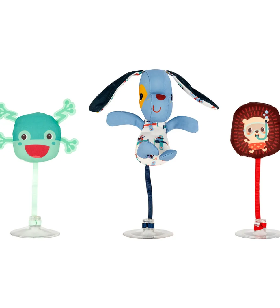 Charmerende Lilliputiens badelegetøj bestående af tre, farverige figurer med sugekopper. Hver figur har et unikt print, der tiltrækker barnets opmærksomhed. Lilliputiens badelegetøj er designet til sjove stunder i badet.