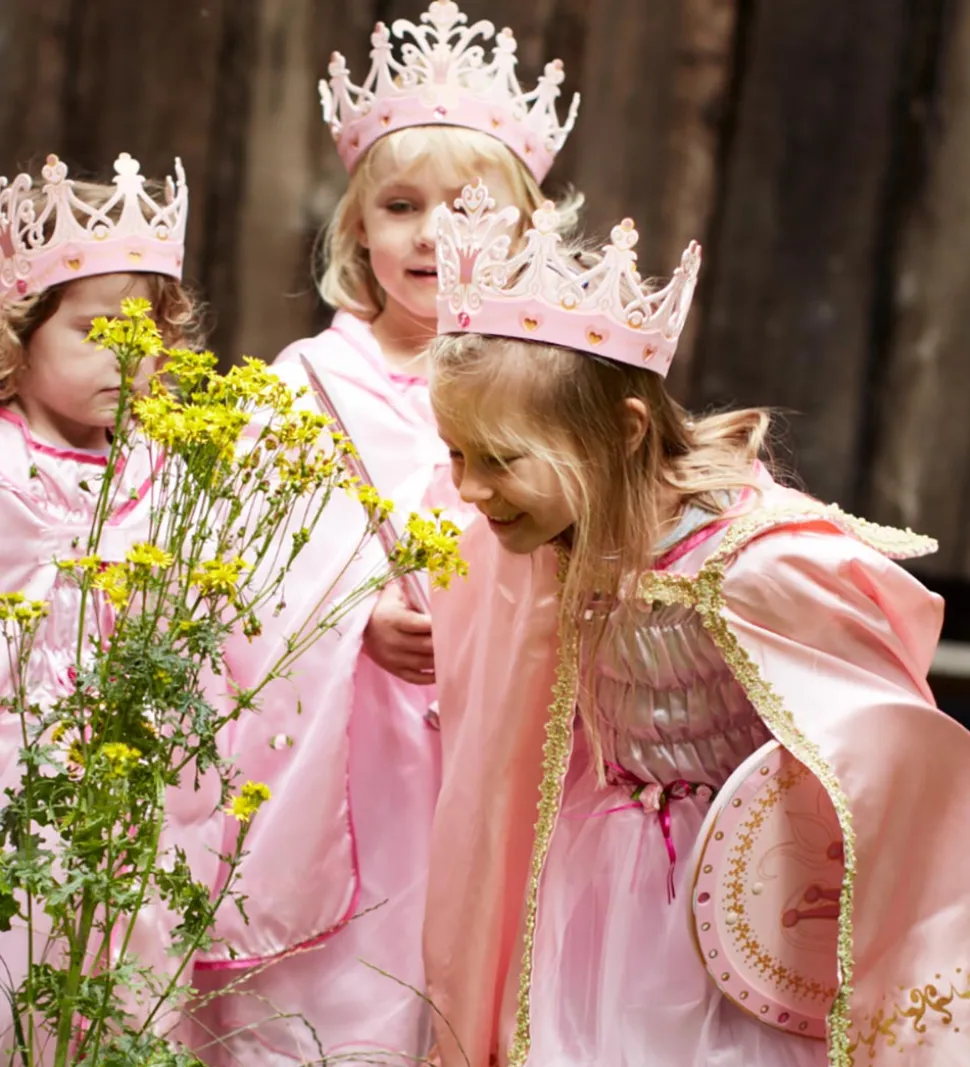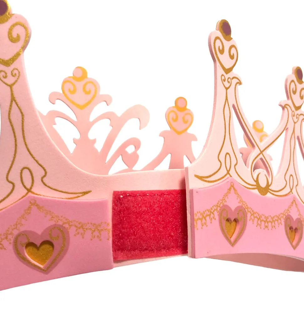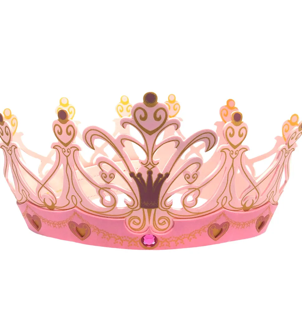 Fin Liontouch udklædning i form af en dronningekrone i rosa med gydne detaljer.