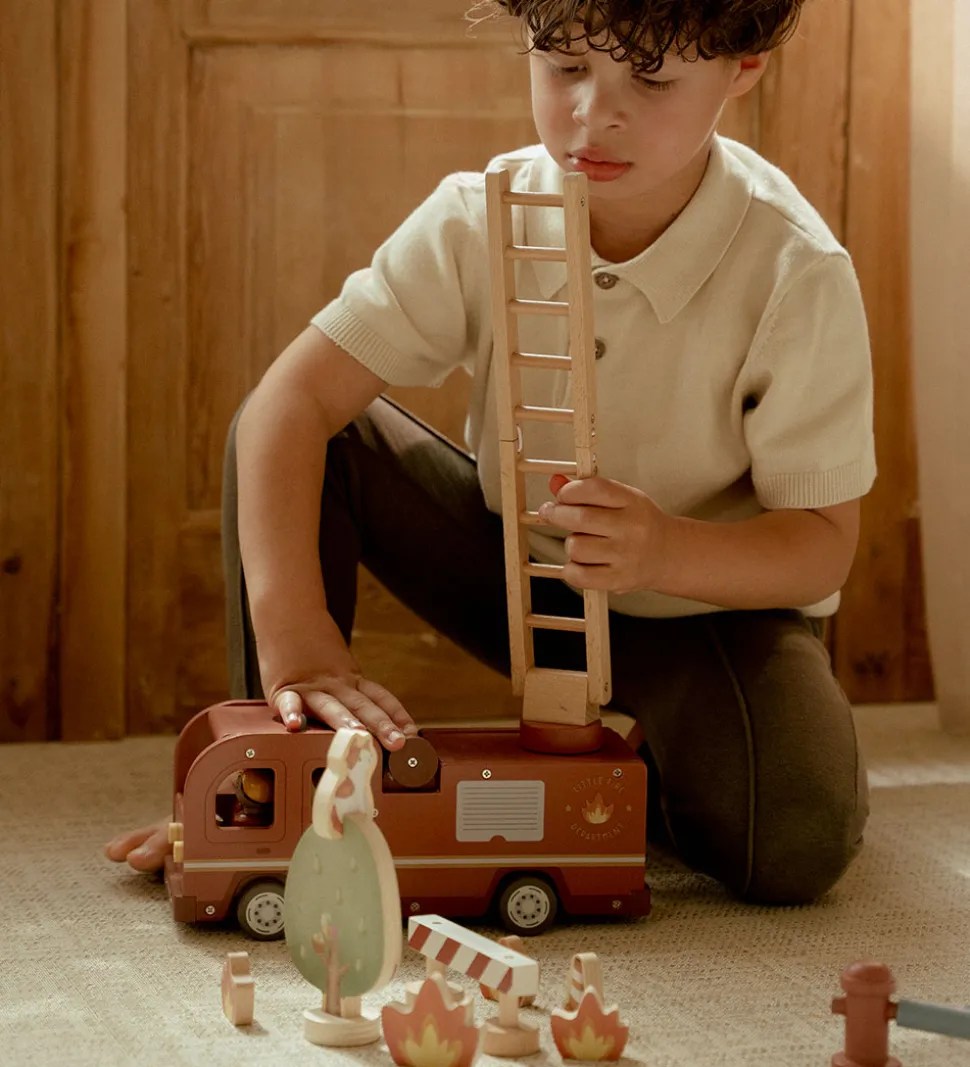 Flot Little Dutch brandbil i rød. Little Dutch brandbilen har en udfoldelig stige, fine figurer og andet spændende tilbehør, der gør legen ekstra sjov. Perfekt som gave eller til samlingen på børneværelset.