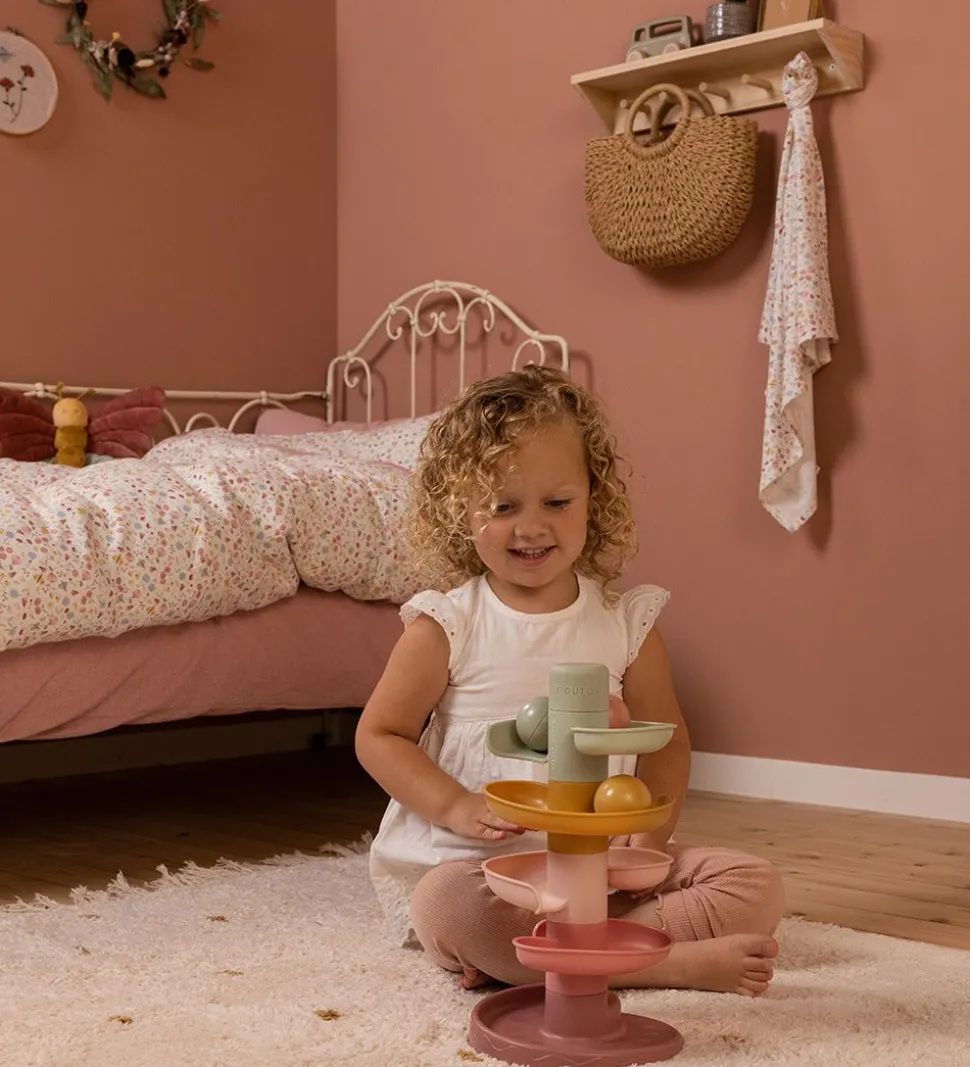 Little Dutch kuglebanen kommer med 3 bolde, som rasler når de bevæges. Banen består af 5 etager, som er formet som en spiral, og den kan samles på flere forskellige måder.