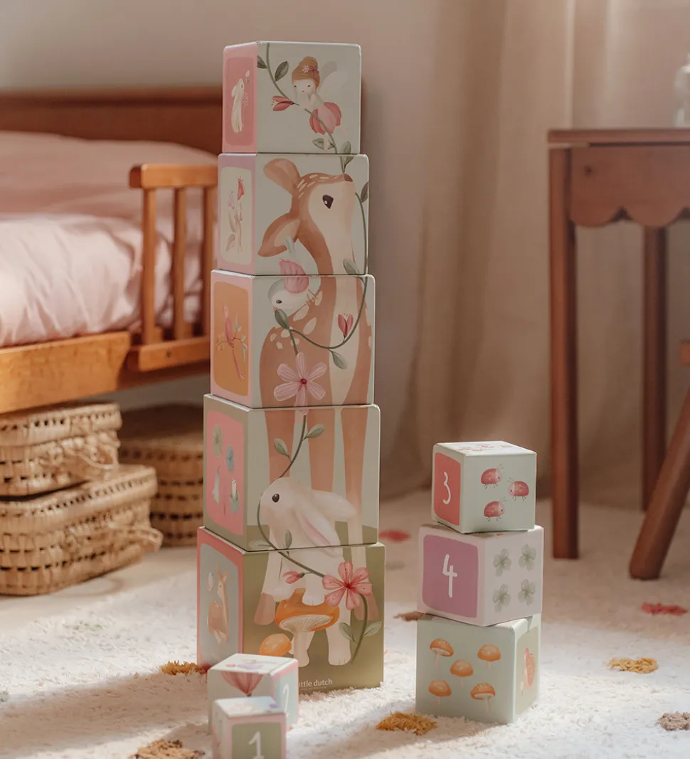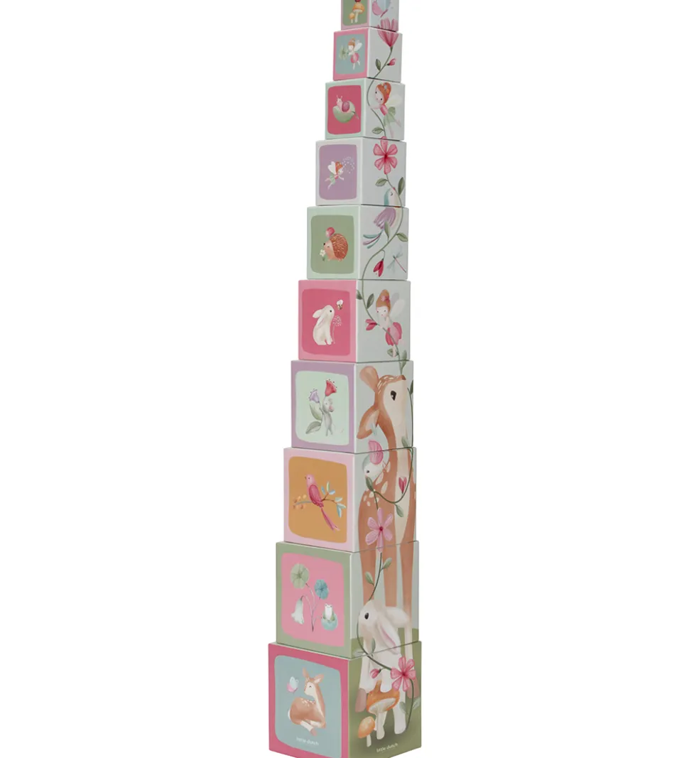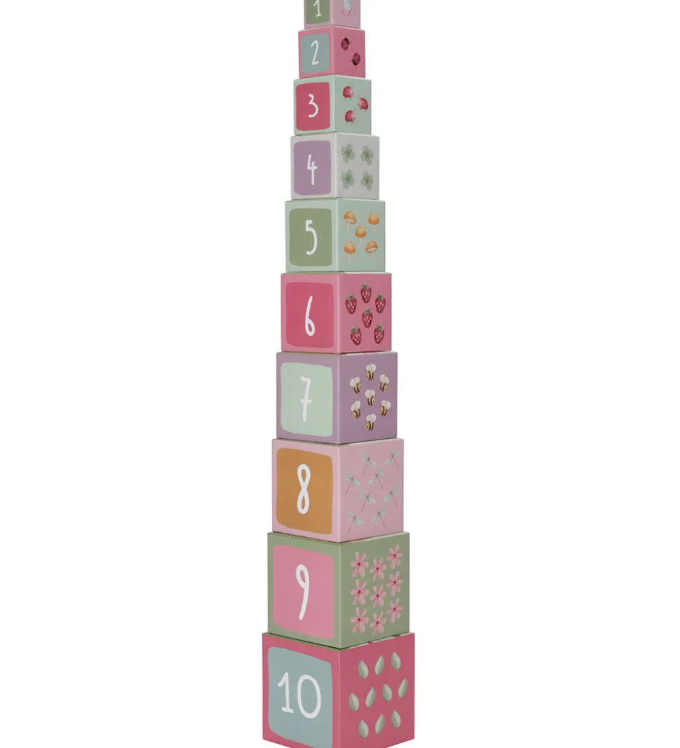 Flot Little Dutch stabletårn bestående af 10 firkantede klodser, der har motiver fra haven.