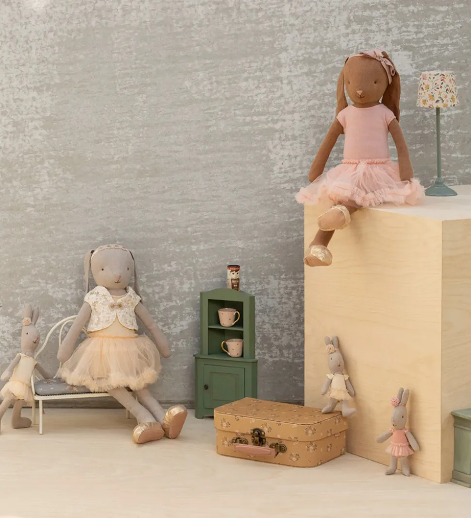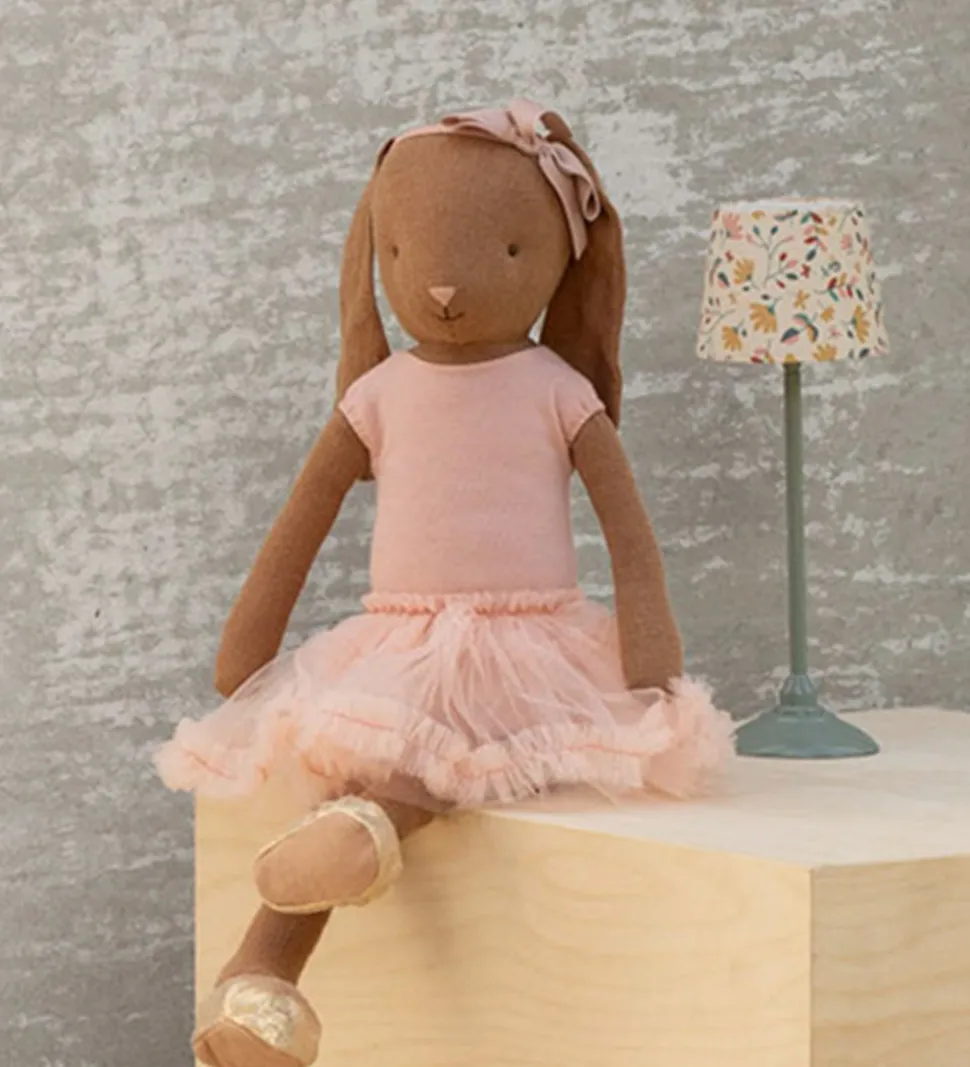 Fin Maileg kanin i brun iført en rosa balletdragt og et tylskørt.