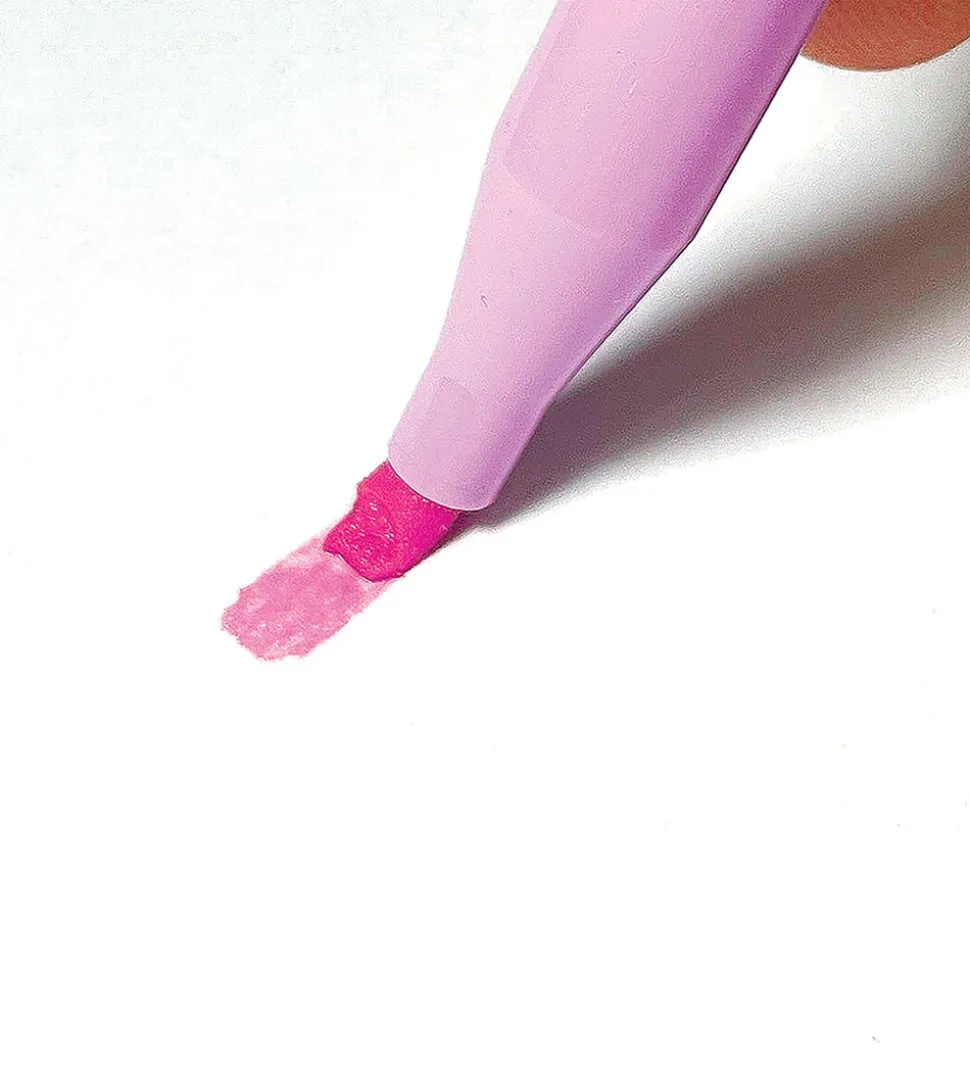 Ooly overstregningstuscherne har en rund form, er med låg og har en bred, fleksibel spids. Farven i overstregningstuscherne er ugiftig.