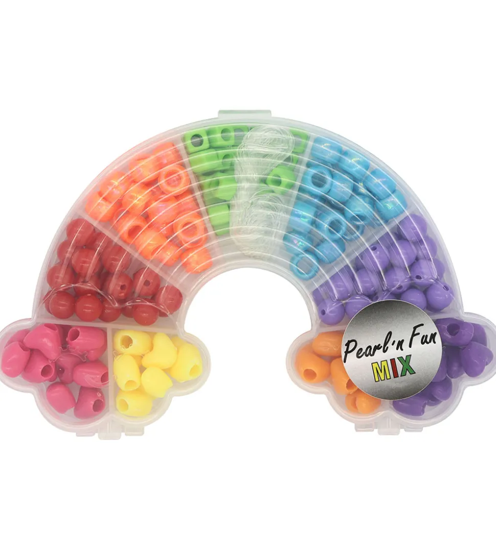 Pearl N Fun perlerne kommer i en opbevaringsæske af plastik og formet som en regnbue med 9 rum og indeholder: