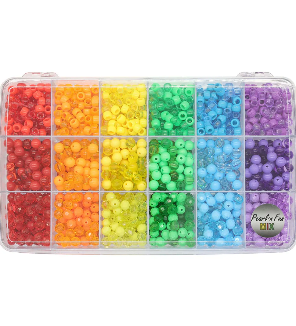 Pearl N Fun perlerne kommer i en opbevaringsæske af plastik med 18 rum og indeholder: