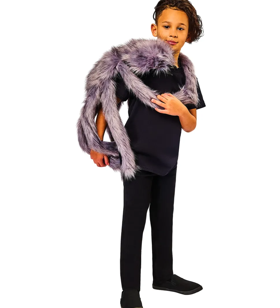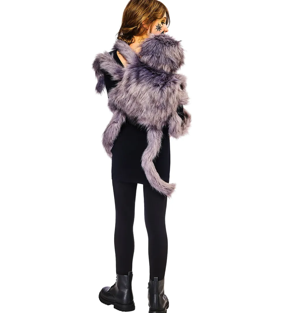 Smart Rubies udklædning af en gigantisk, behåret edderkop, som sidder på skulderen.