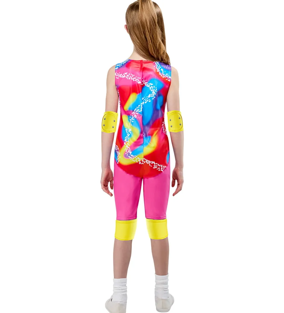 Flot Rubies udklædning med et kostume og forskelligt tilbehør, så barnet kan klæde sig ud som en Barbie der står på rulleskøjter.