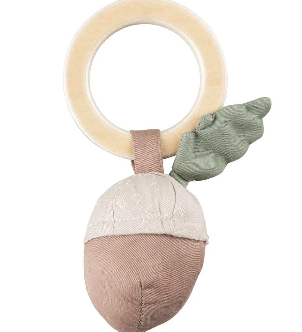 Sebra ranglen består af en ring af lyst træ med et vedhæng som rasler, når man ryster det.