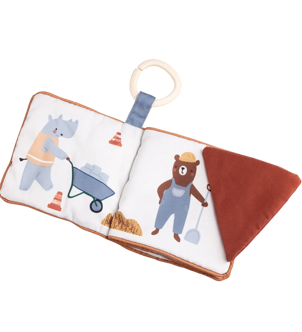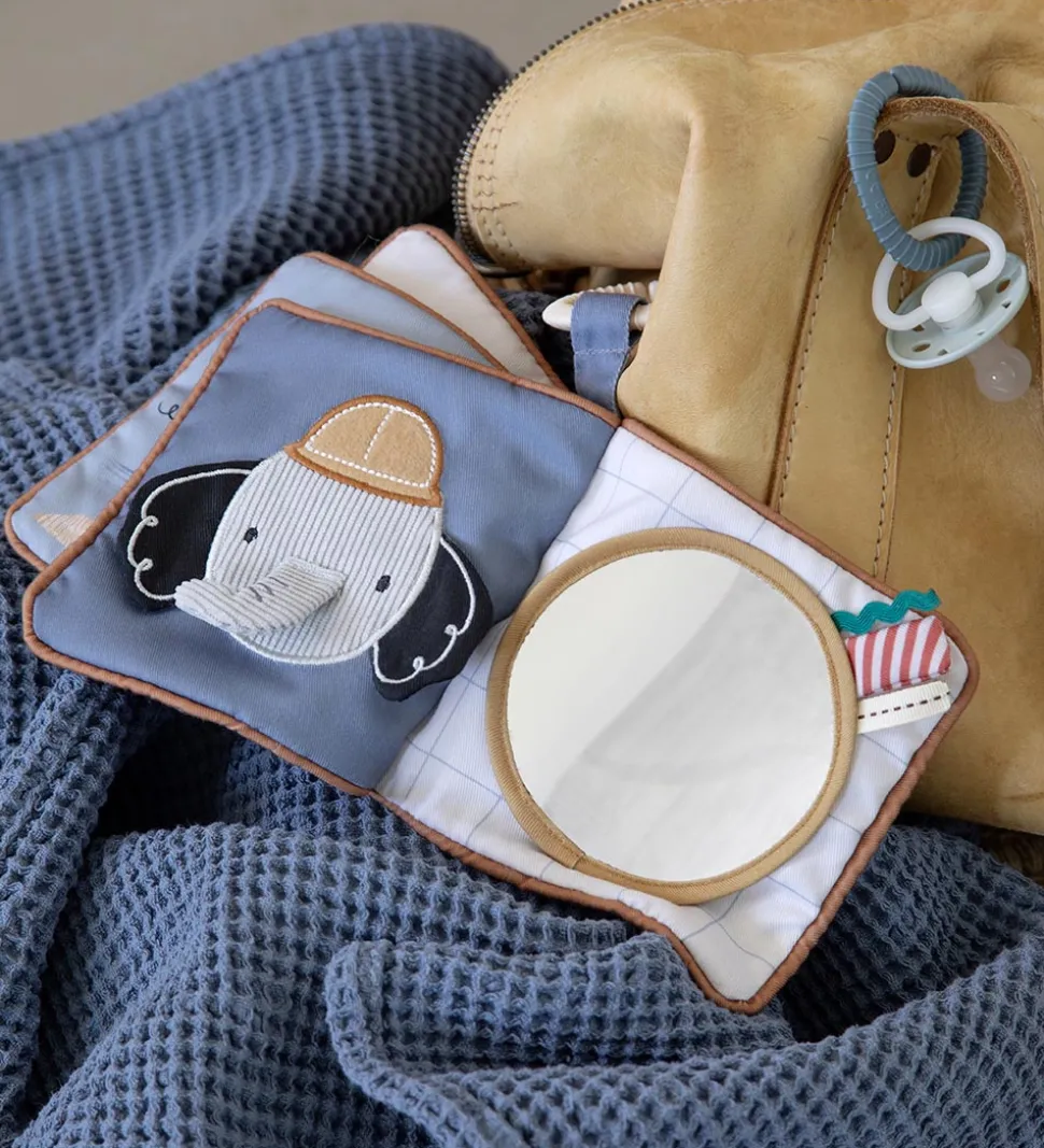 Sebra stofbogen består af 8 sider med fine motiver og stimulerende detaljer såsom et sikkert babyspejl, en bidering, forskellige flapper, funktioner og teksturer, som barnet kan udforske. Stofbogen stimulerer både barnets føle- og høresans og desuden dets nysgerrighed.