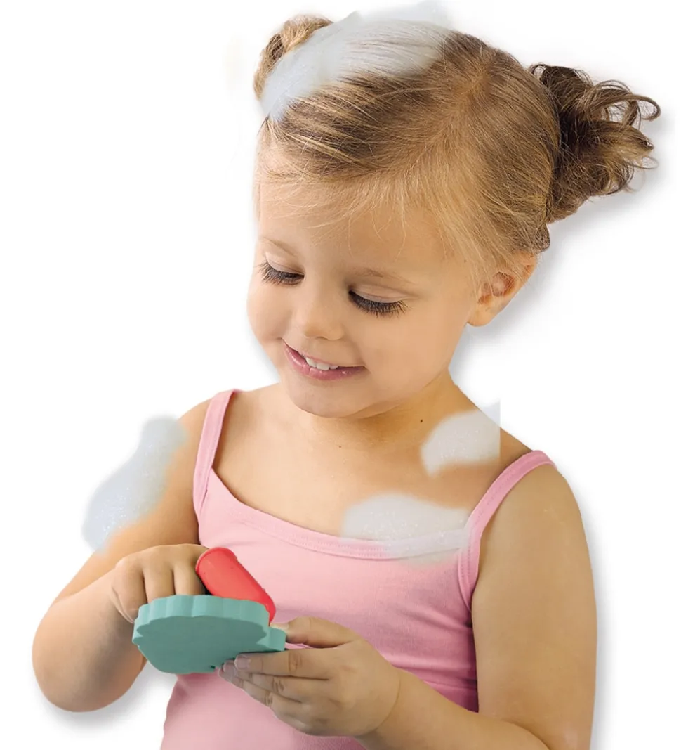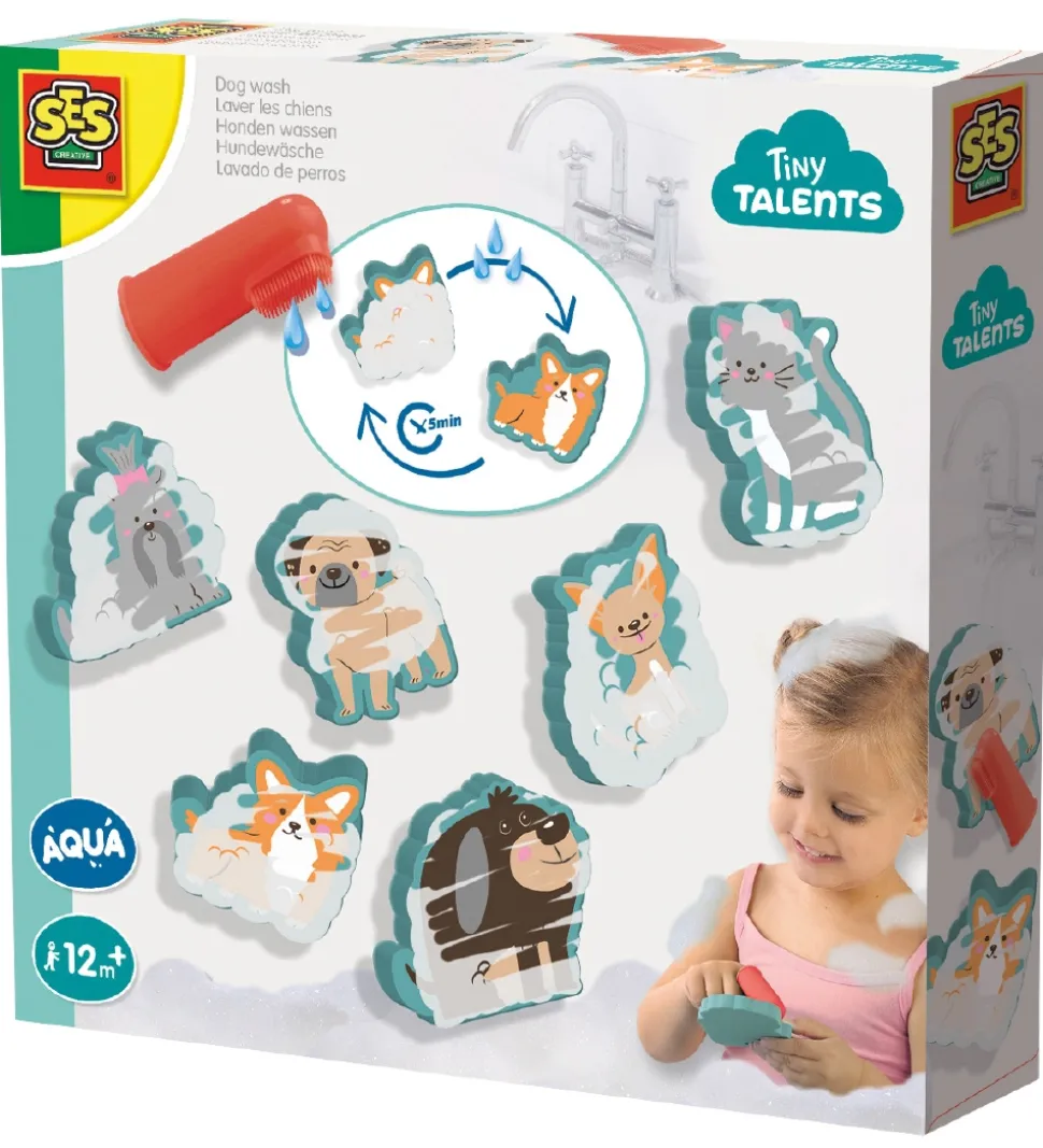 SES Creative badelegetøjet er sjovt til de små, da hundene og katten er gemt af skum, som forsvinder når de bliver våde med fingerbørsten. Skummet kommer tilbage efter ca. 5 minutter.