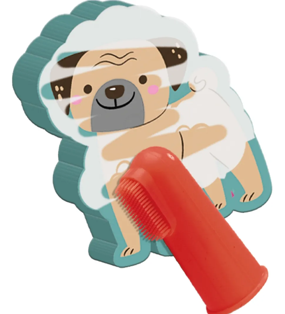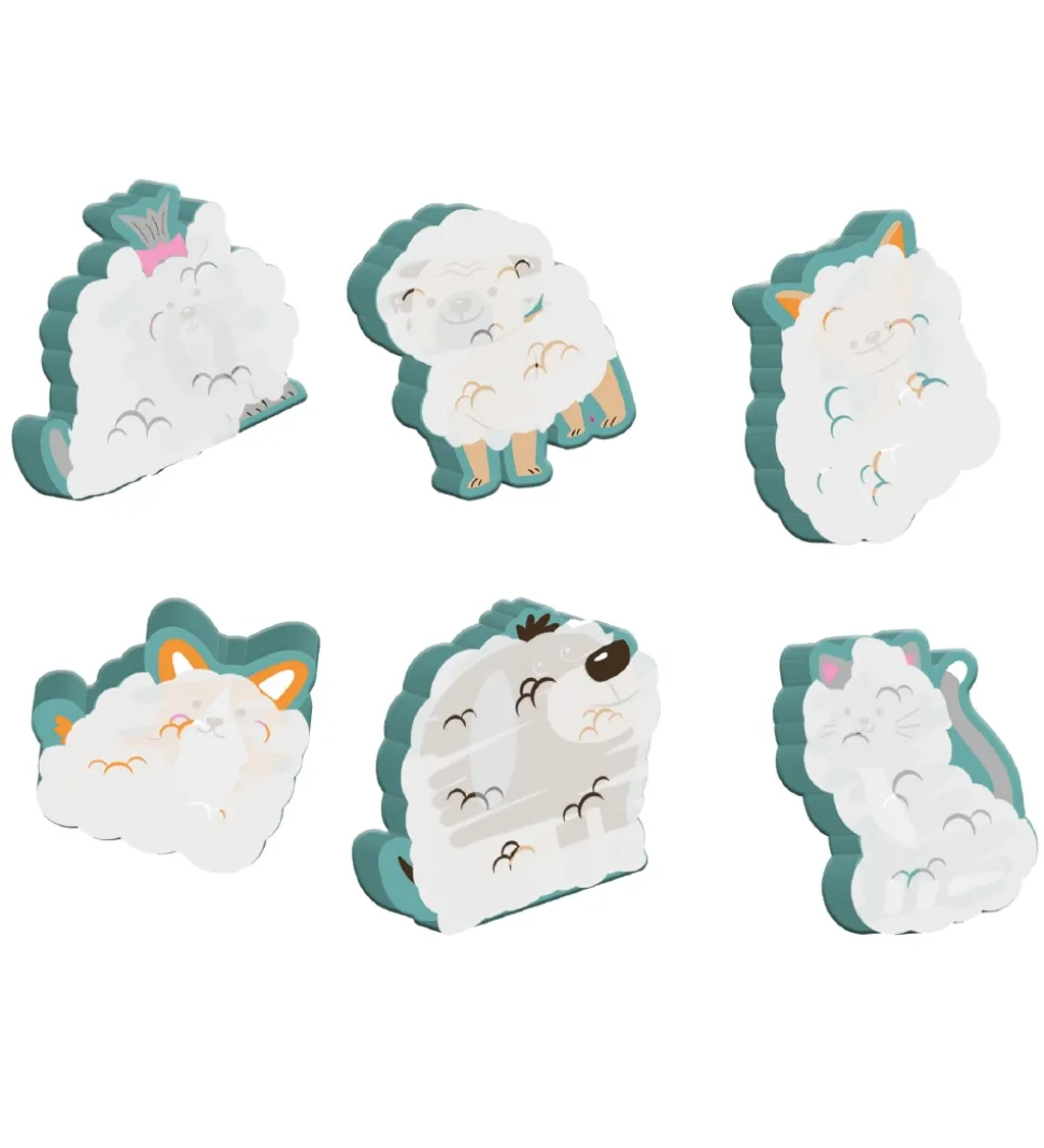 Sjovt SES Creative badelegetøj bestående af fem hunde, en kat og en fingerbørste.