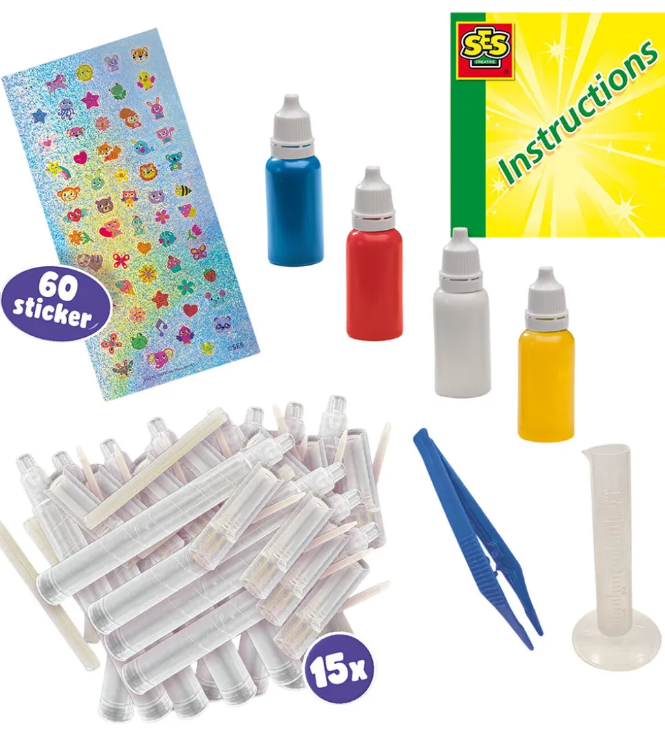 Farverigt SES Creative kreasæt som gør det muligt at lave sine egne tuscher. Kreasættet indeholder følgende: