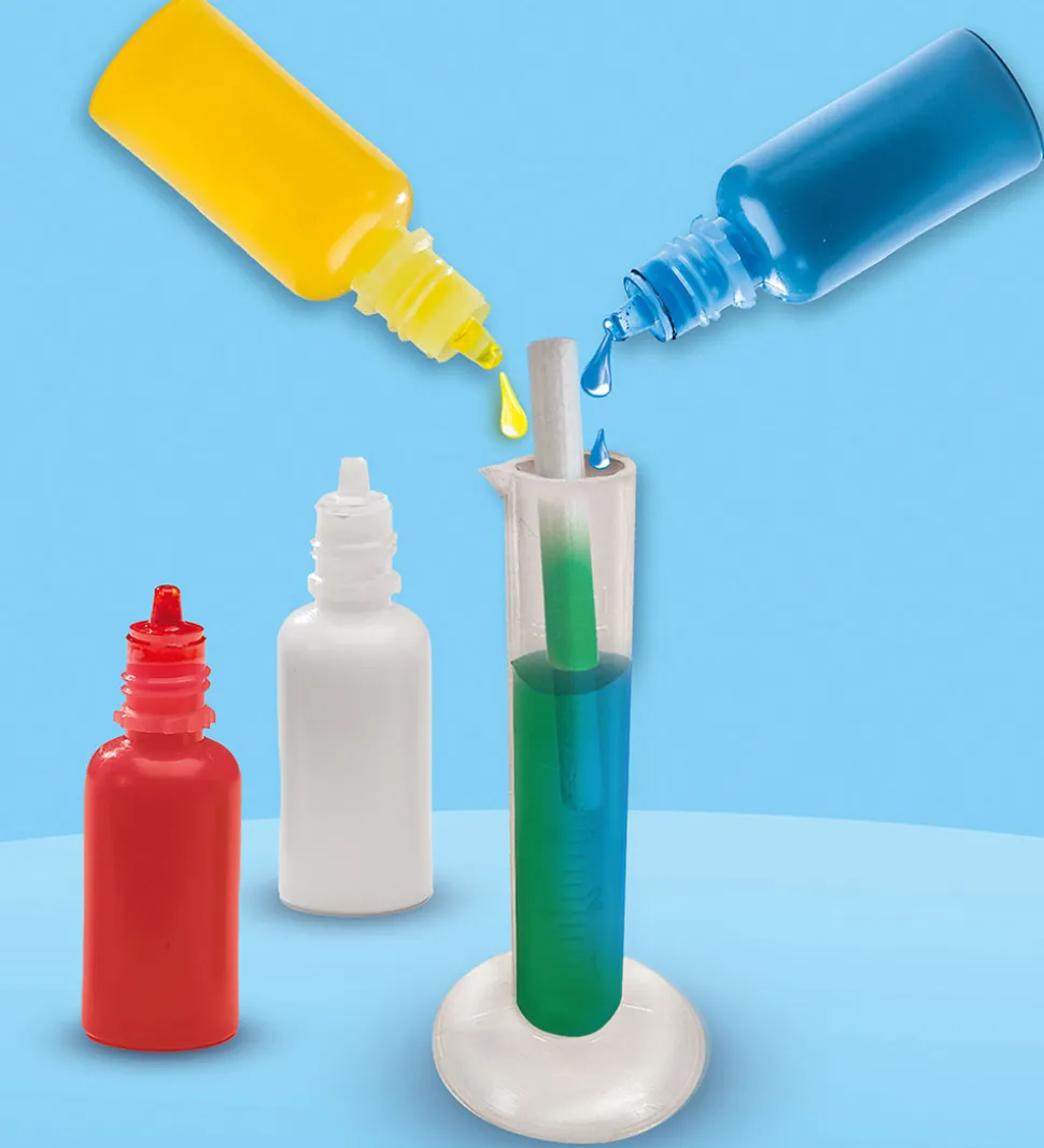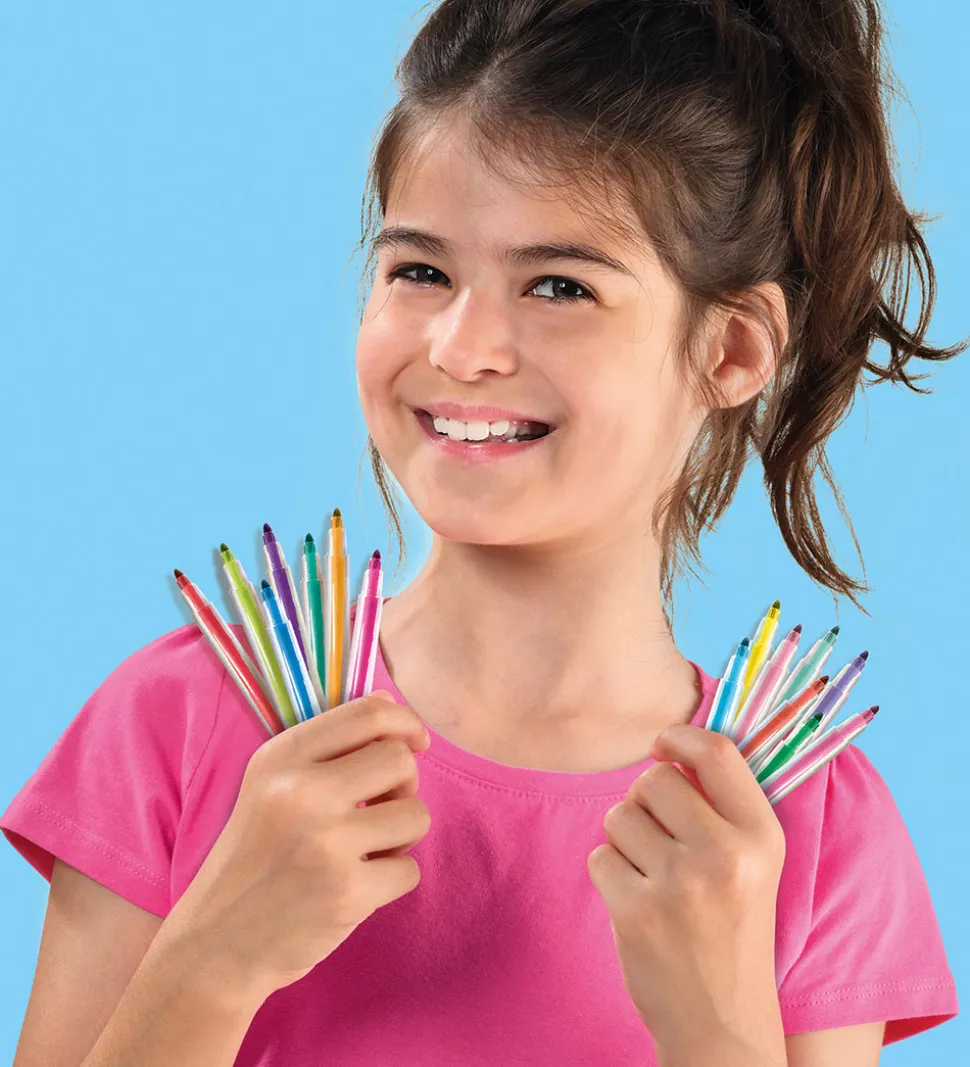 SES Creative kreasættet gør det muligt at blande de fire farver på kryds og tværs, så man laver sin helt egen farvepalette. De medfølgende klistermærker kan sættes på tuscherne eller på de farverige tegninger man kan tegne med sine helt personlige tuscher.