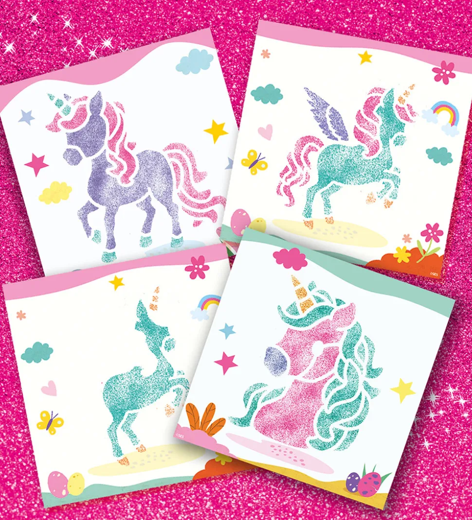 Kreasættet fungerer ved at man lægger en skabelon på papiret, hvorefter man puster ned i tuscherne, så farven kommer ud og giver en prikket og flot effekt. Kreasættet er en anderledes måde at lave flotte og farverige tegninger på.