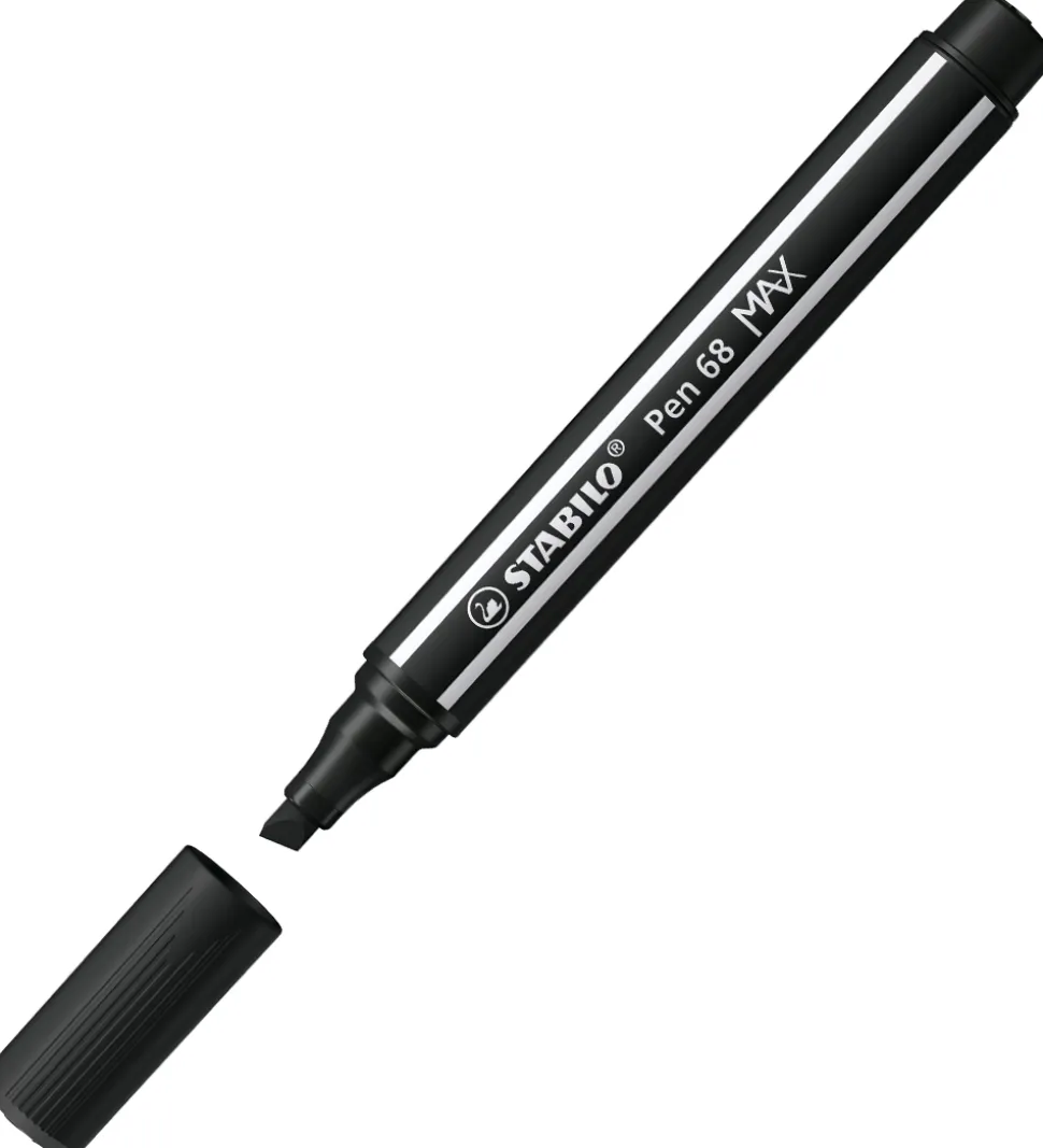 Stabilo tuscherne har en filtspids af høj kvalitet og med max størrelse, som kan lave både tykke og tynde streger og desuden akvareleffekt. Farven er vandbaseret og lugtfri. Den kan klare 24 timer uden hætte uden at tørre ud.