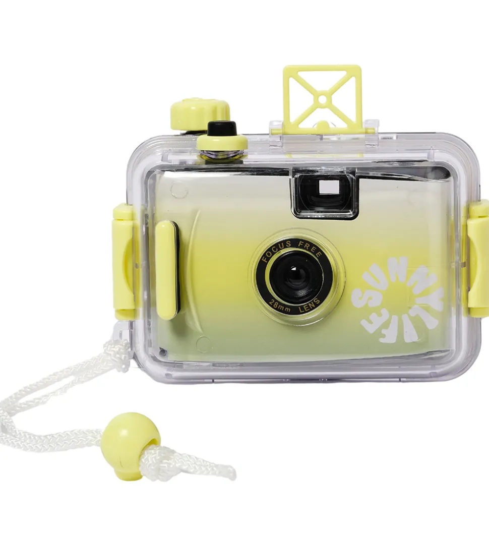 Sjovt SunnyLife undervandskamera i lyse, neongrønne farver.