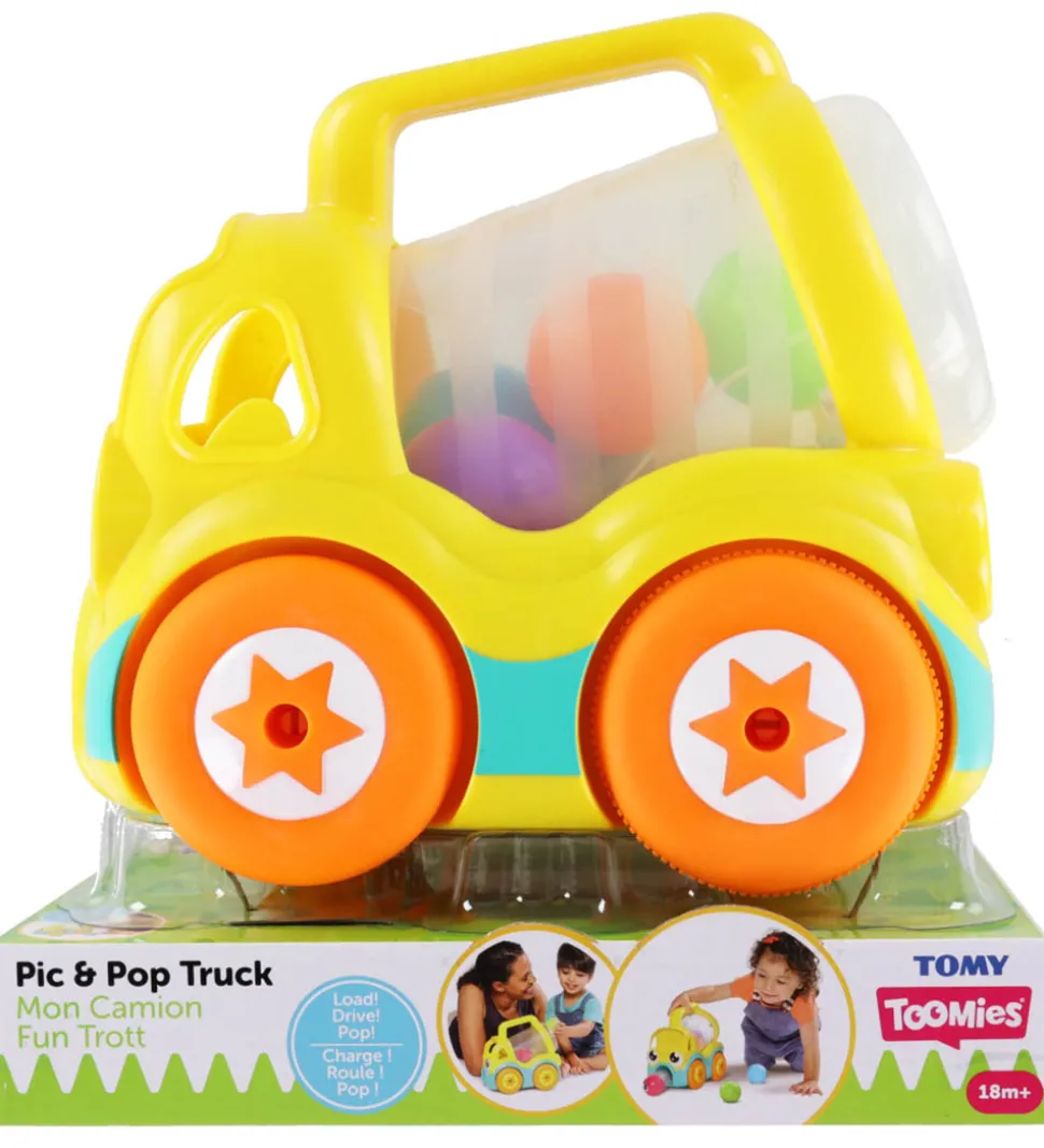 Toomies aktivitetslegetøjet gør det muligt at skyde små med bolde, hvilket skaber glæde og latter hos de mindste. Kør med cementblanderen ved hjælp af håndtaget på toppen, hvorefter tromlen, der er fyldt med fem bolde, vil begynde at dreje og til sidst skyde kugler ud foran.