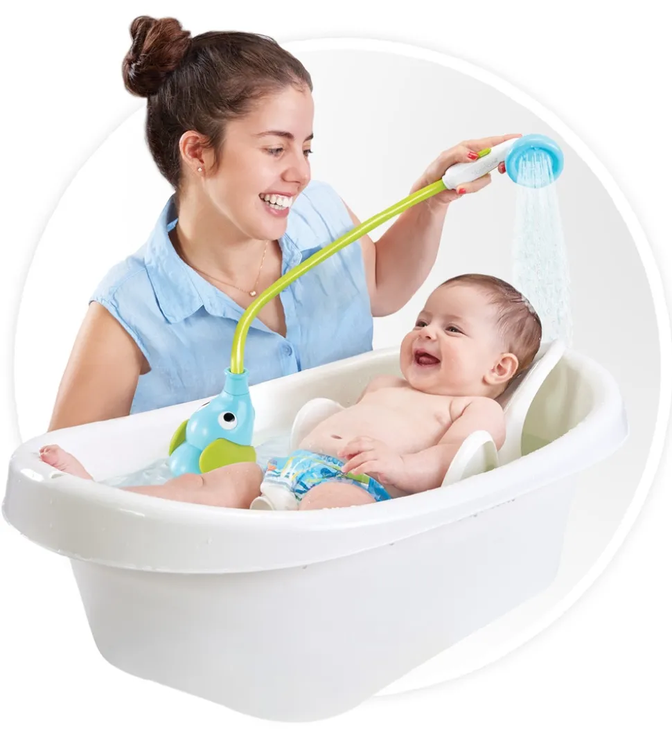 Yookidoo badelegetøjet sættes i badekarret og så kan den lange snabel sprøjte med vand. Badelegetøjet kan bruges til at vaske babyen, når de er små og når de bliver ældre, kan de selv lege med elefanten.