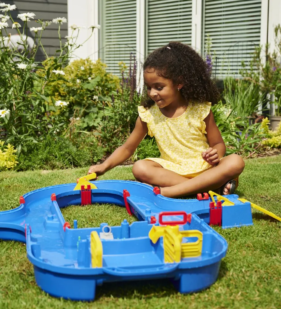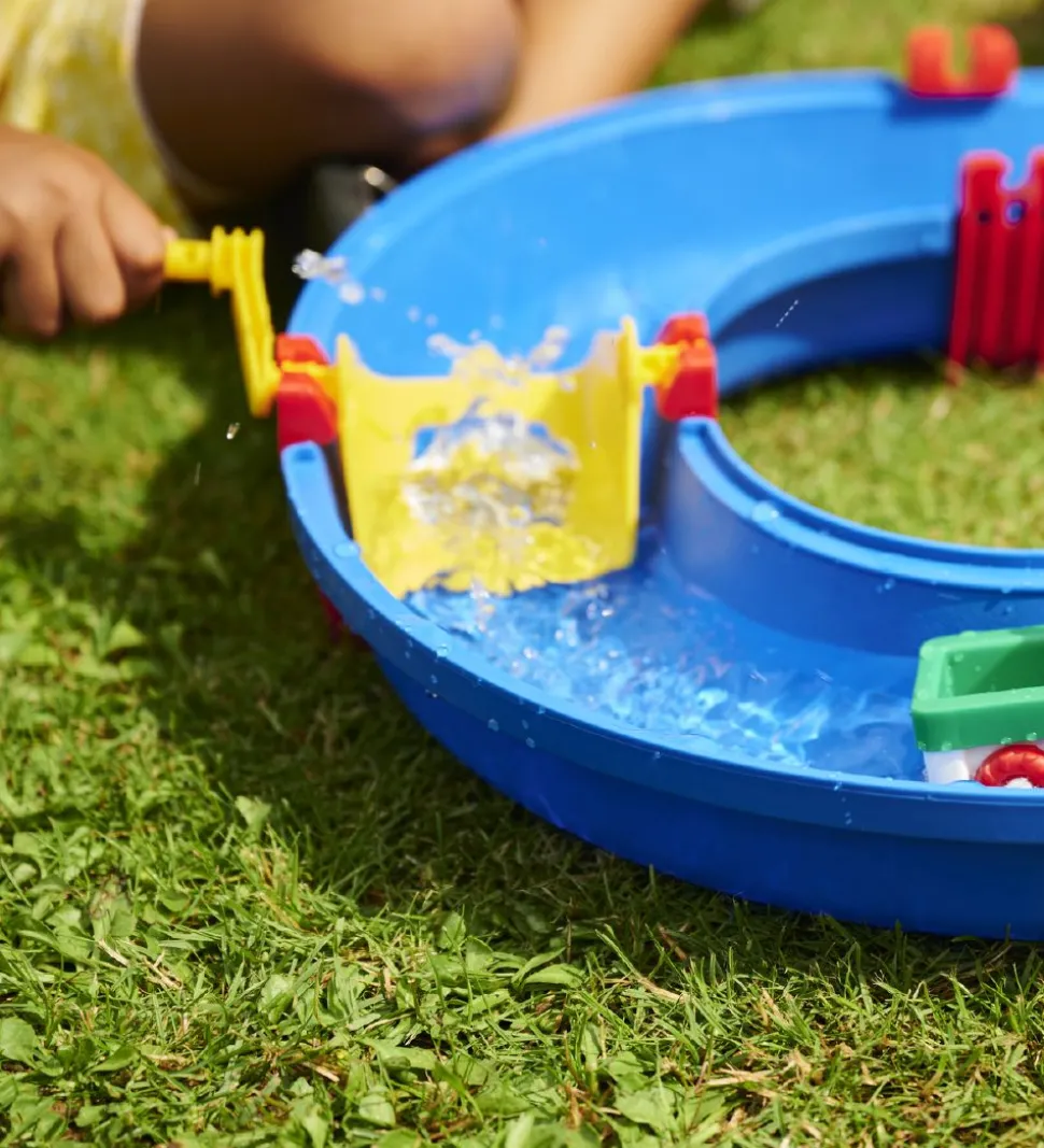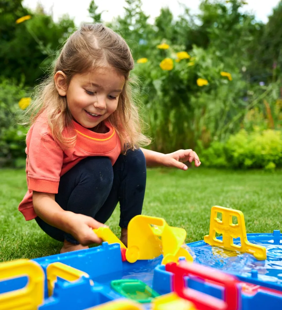 AquaPlay legesættet er beregnet til at komme vand ned i, hvorefter de forskellige funktioner vil vise sig. Herefter kan barnet selv styre, hvordan vandet skal løbe med de forskellige både, kraner, møller og pumper.