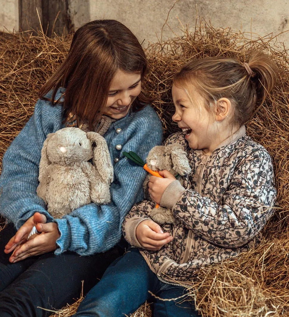 Charmerende by ASTRUP bamser der forestiller en stor kanin og hendes unge i lysebeige. Bamserne har et sødt udtryk med lange ører og en blød plys-krop, der indbyder til masser af kram.