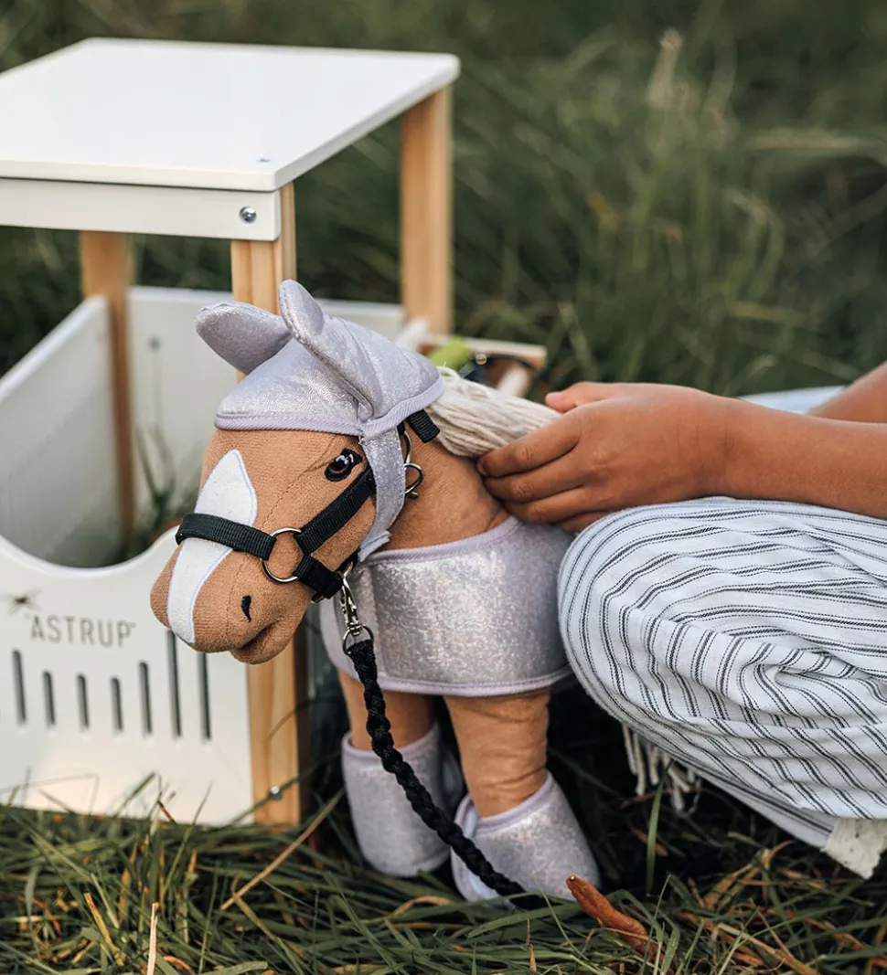 by ASTRUP tilbehøret har en praktiske velcrolukninger, så den er let at få af og på hesten. Udstyret giver hesten et elegant udtryk og passer til by ASTRUPs hestemodeller på 30 cm, Lucky, Pixie og Daisy.