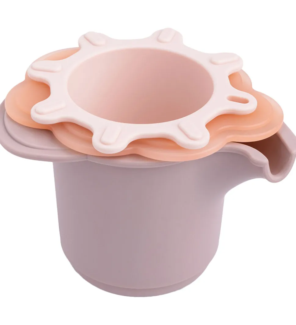 - 1 skål formet som en sol i lyserød med åbne/lukke-funktion og små huller i bunden