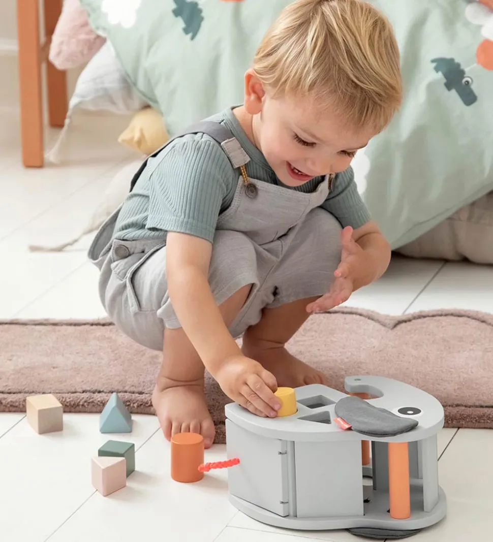 Leg med puttekassen hjælper barnet med at udvikle deres logiske tænkning, finmotoriske færdigheder og til at genkende forskellige geometriske former.