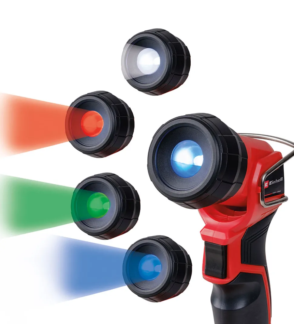 Einhell lygten har et realistisk design, så den lille medhjælper med glæde vil hjælpe til. Der medfølger et udskifteligt batteri, som passer til alt Einhell værktøj. Lygten har 3 forskellige lystilstande og skinner i 4 forskellige farver.